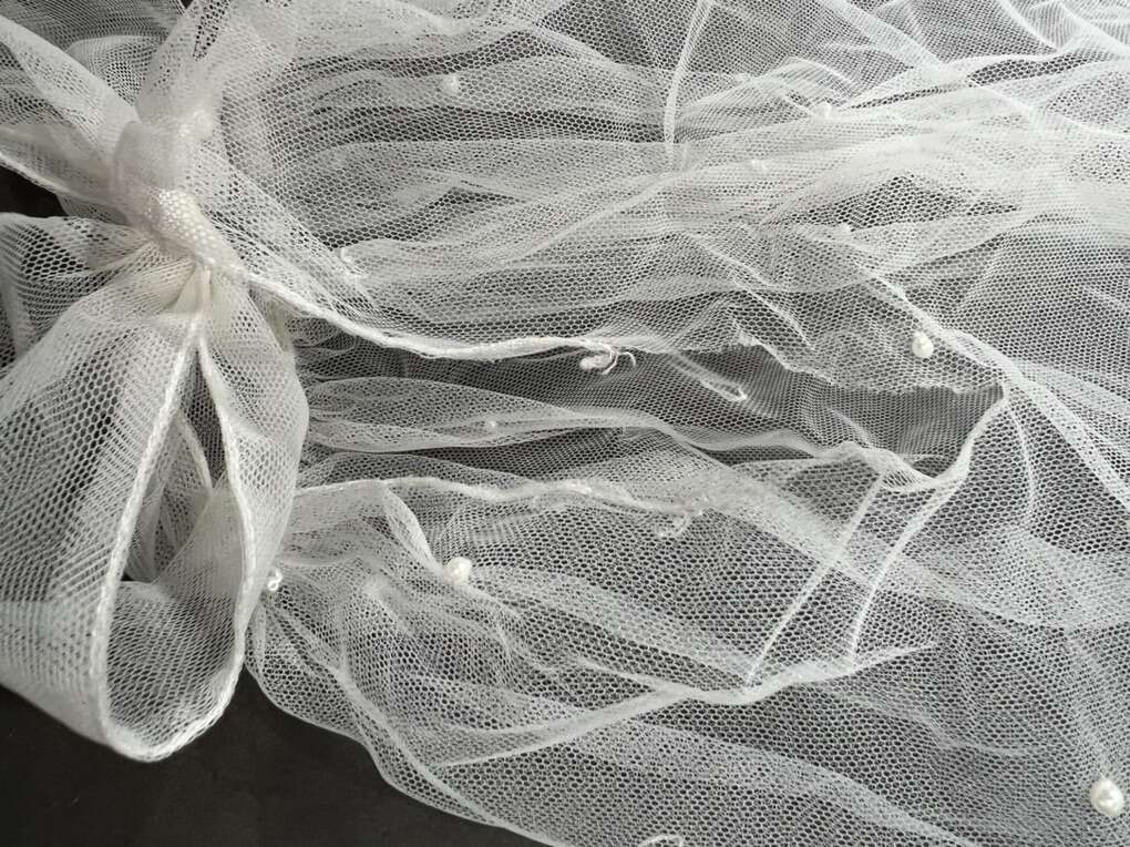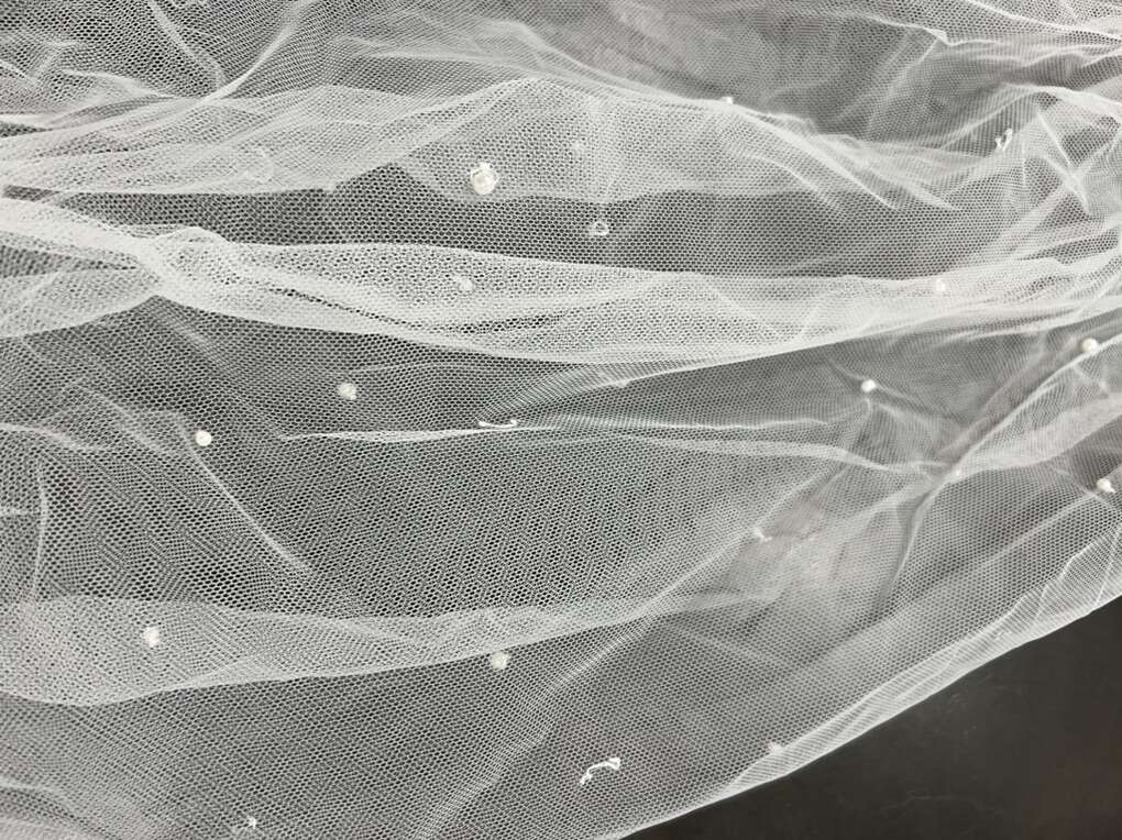 VenmoEnglish netting and pearl bishop sleeve. We purchased these from the bridal shop, They were a sample sleeve, so they’ve been tried on in the store but never worn. There is a small tear at the wrist. We didn’t end up using them because they weren’t quite long enough for what we wanted to do.