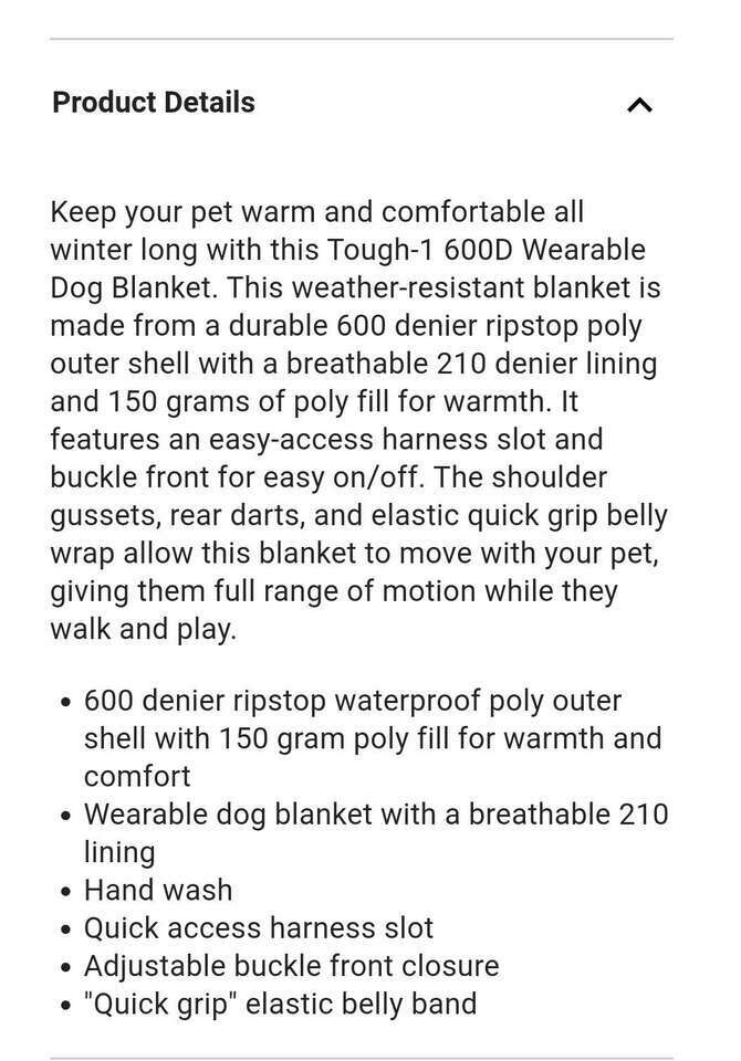 Tough-1 600D Dog Blanket / Coat Size small Color pink New with Tags