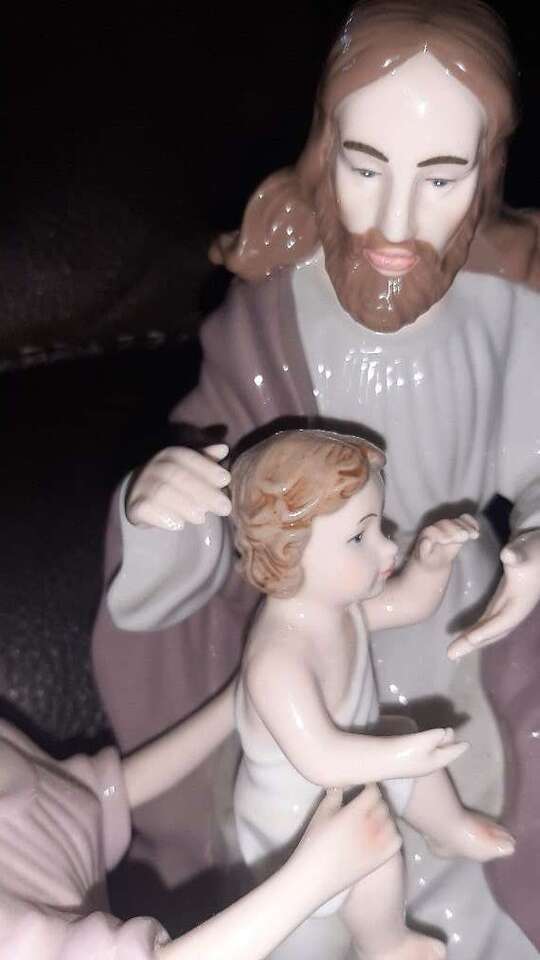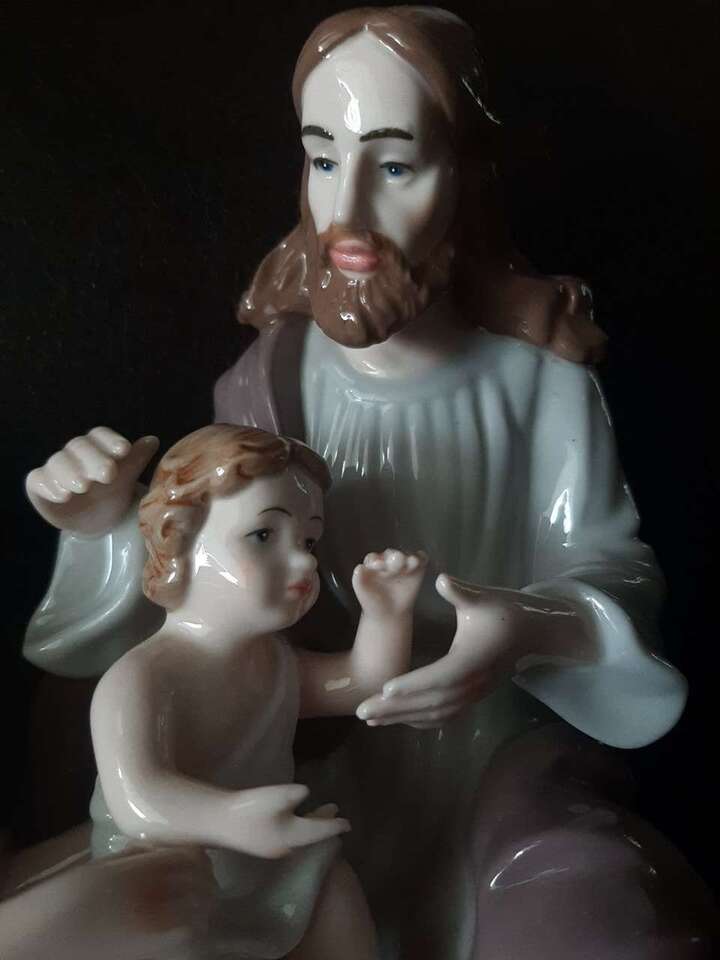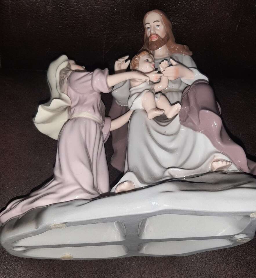 Vtg Porcelain Jesus Bring Your Children To Me 10.5”x9” Glossy Christian (no original Box)