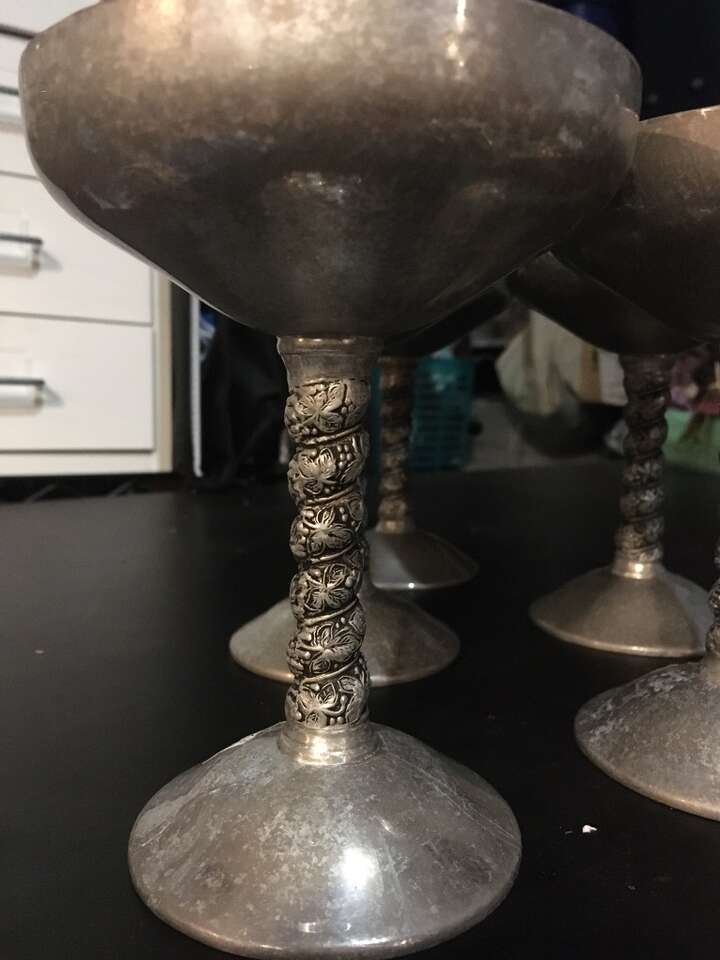 Stems have a beautiful leaves design. Made in Spain. Great for entertaining or attending a Renaissance fair.