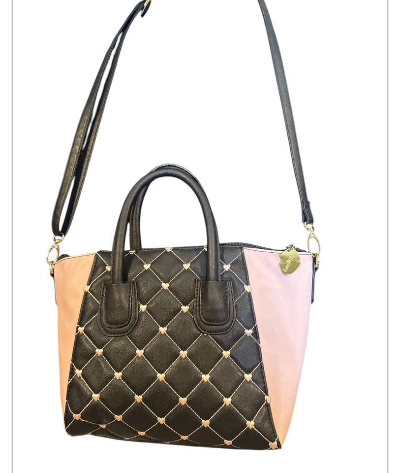 VenmoClean inside & out one zipper picket inside. Zipper closure. Gold hardware. Bottom measures 9”x4” 9” tall. Dusty Rose and Black. Diamond tuck embellishment