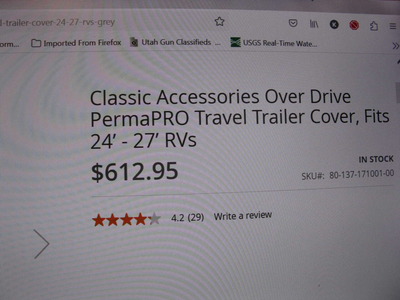 Classic Accessories Over Drive PermaPro Travel Trailer. Fits 24'-27' RVs travel trailer, and possibly Motorhomes. No holes, or tears. Please look at picture descriptions and retail price. Excellent Used Condition! $275.00 OR BEST OFFER. Please phone calls only.
