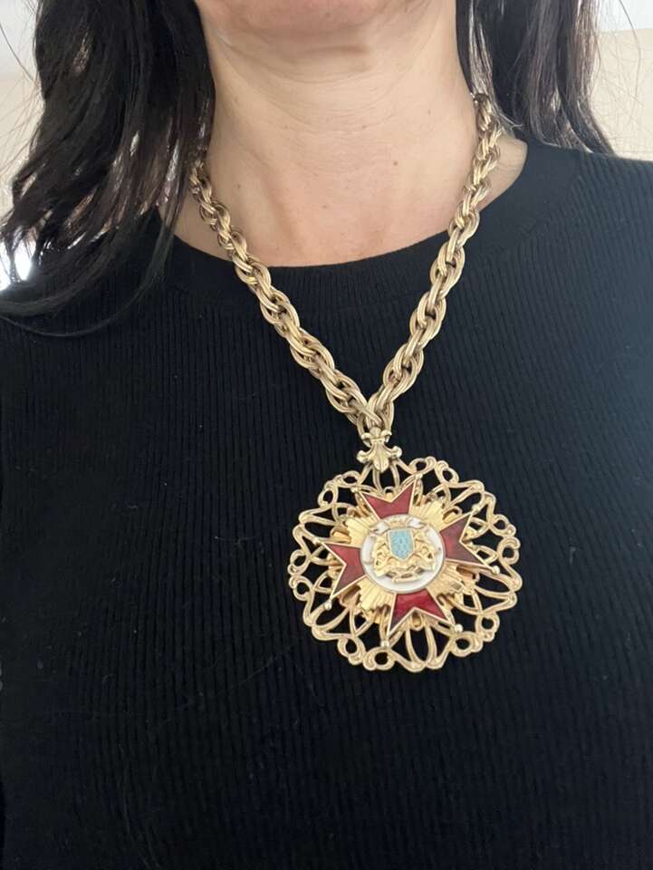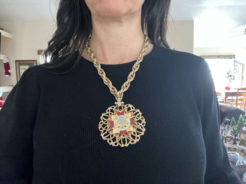 Necklace large metal intricate vintage metal costume jewelry 14” length 3” metal