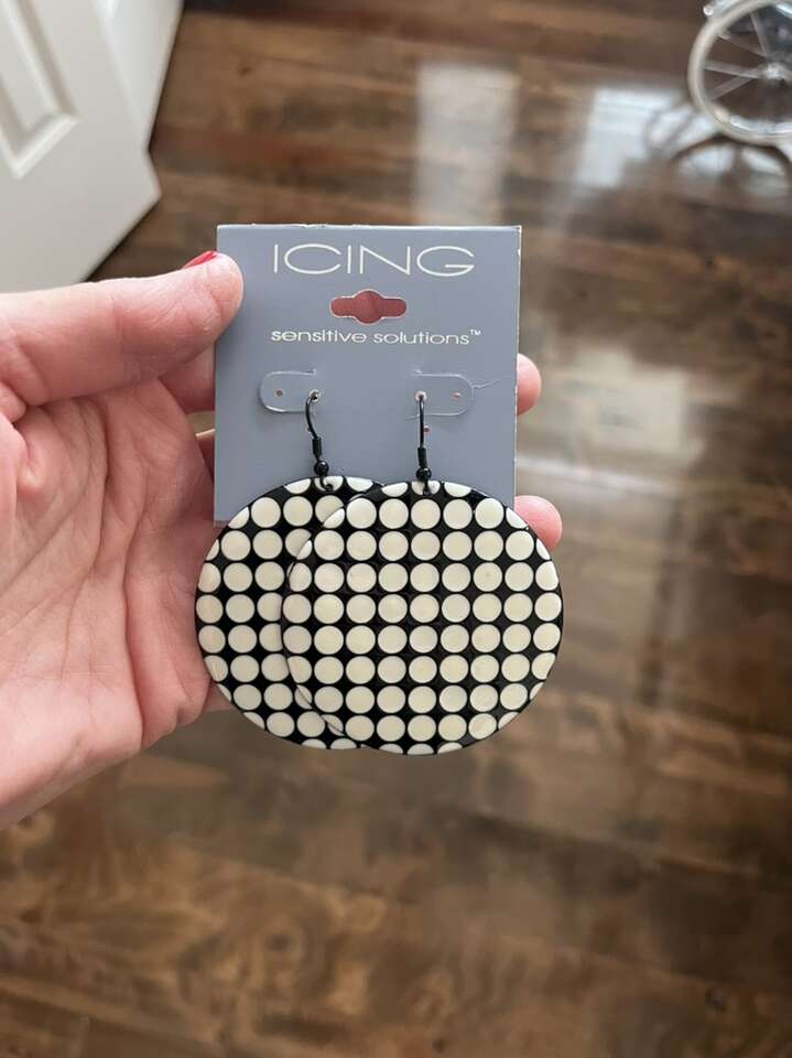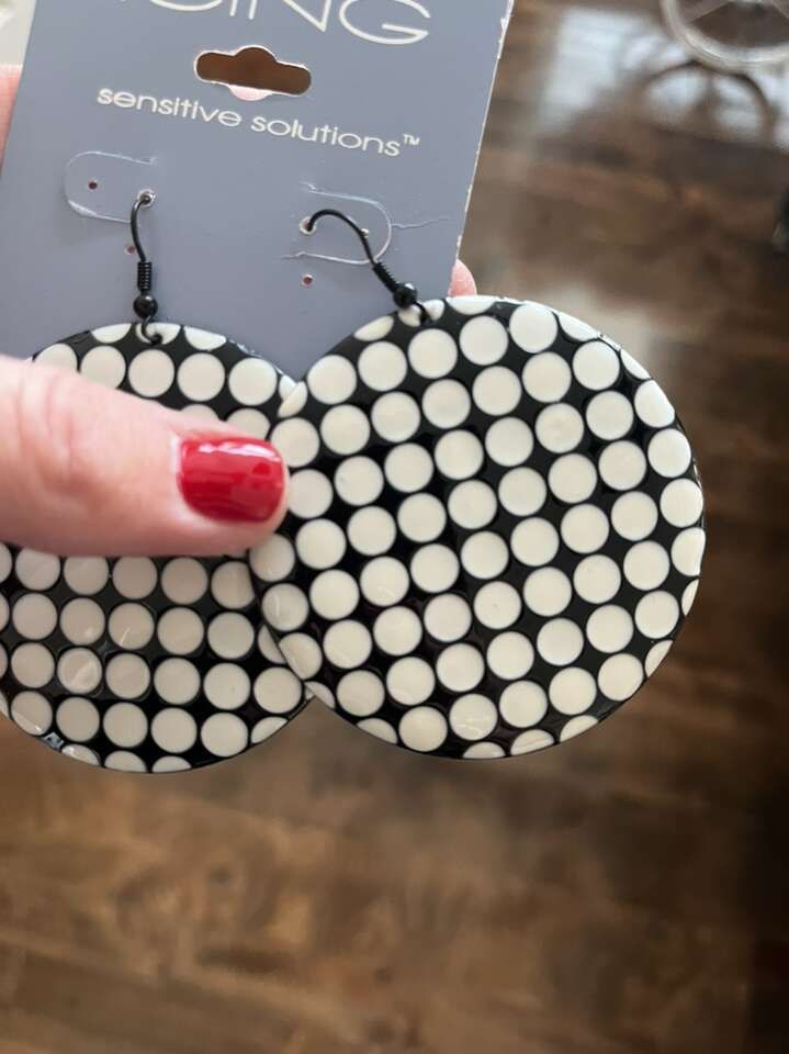 Earrings retro style icing brand 3” total black/white polka dot new!
