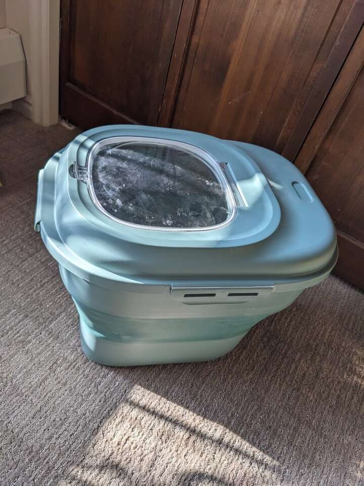 PayPalWe used this for storing 30 pound bags of dry cat food. Shortly after purchase, our toddler realized it was easy to open and was eager to feed the cats often. We replaced it with a screw top type. Works great otherwise!