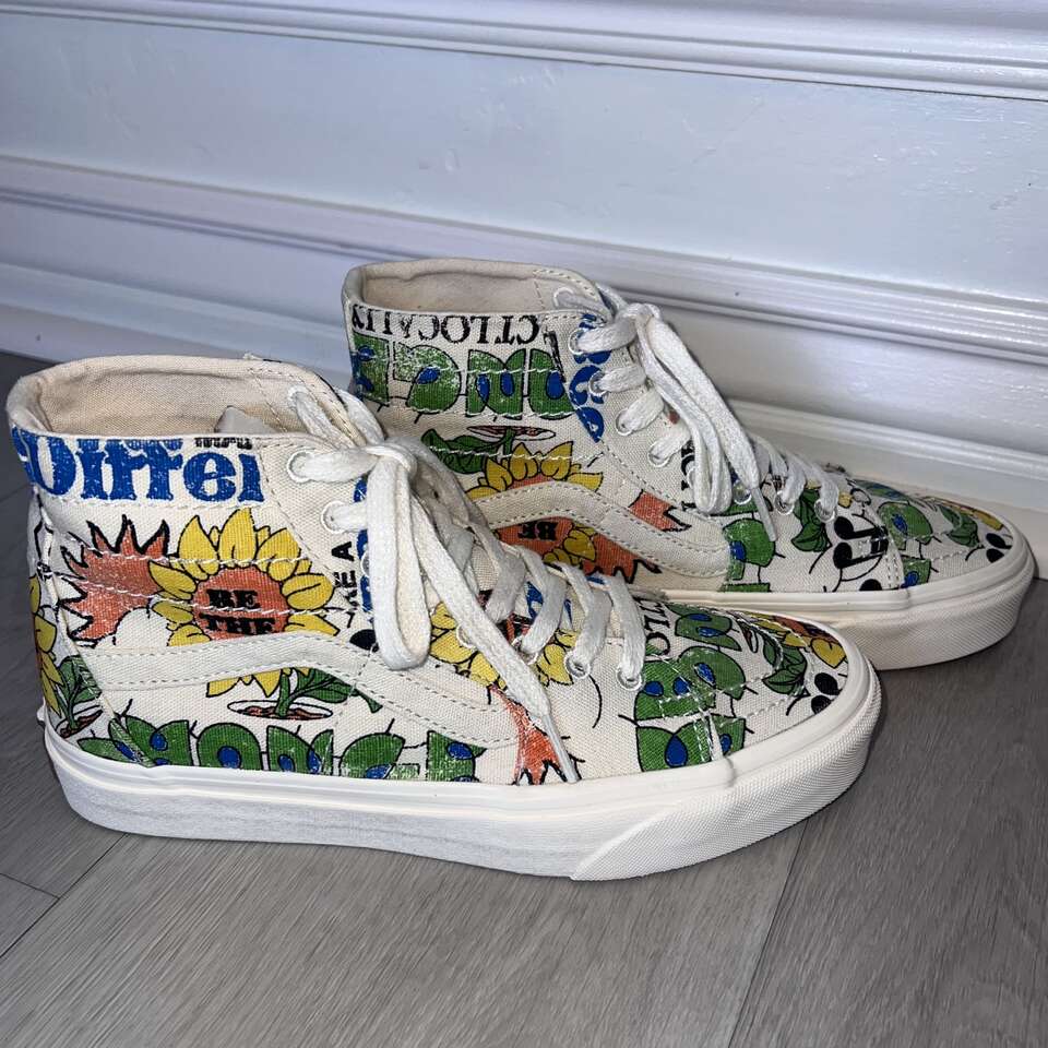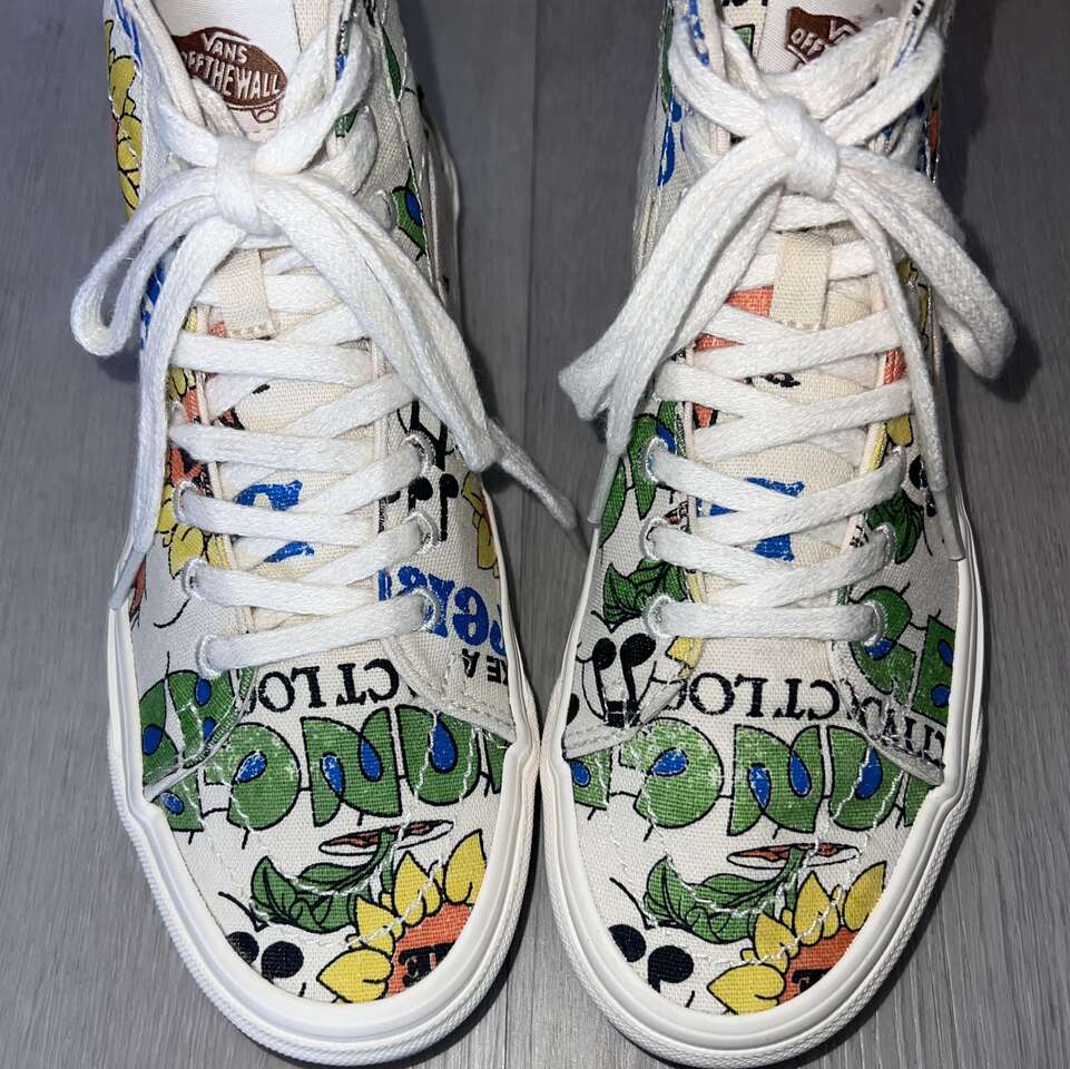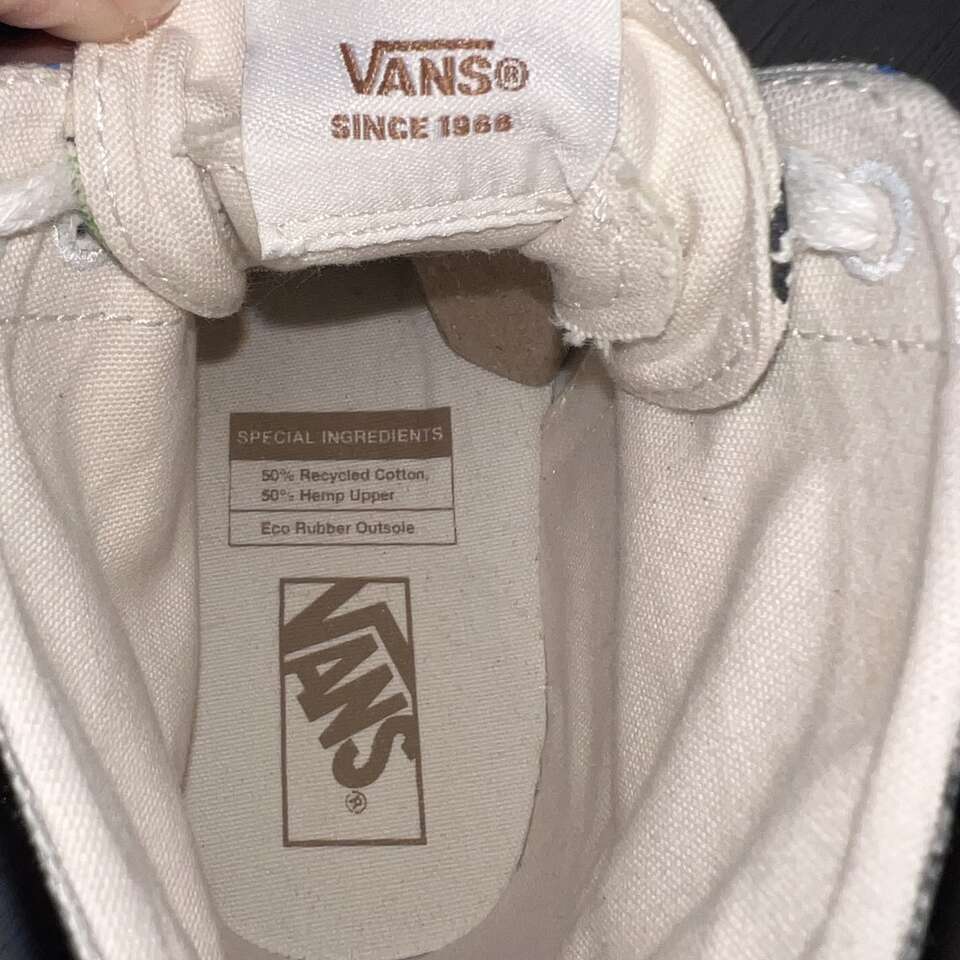 Venmo$40 FIRM. Great preowned condition! Only worn a few times. Bought at Urban Outfitters, Women's Size 7 or Mens Size 5.5. Come in a Vans shoe box. Tapered silhouette upper for a more slender fit than before - Tonal embroidery, metal eyelet details - Organic cotton canvas upper is made from non- GMO natural seeds - Jute laces made from a renewable natural fiber that minimizes water use - Vans Rubber Compound is made from responsibly sourced natural rubber sourced from tree farms that follow ethical and sustainable practices while still maintaining grip and traction - Vans is proud to take a more sustainable approach to their everyday classics with the new Eco Theory collection that leverages responsibly sourced materials and an eco-friendly approach across timeless colorways. The Eco Theory Sk&-Hi Tapered is made with 100% organically grown cotton, along with a responsibly sourced natural rubber outsole that still maintains the grip and durability that Vans has been known for since 1966. Laces are crafted from natural jute fiber, a natural cork topsheet finishes the footbed and the whole package is held together with water-based glues. Content + Care Cotton (organic), rubber - Spot clean - Imported - Size + Fit True to size -