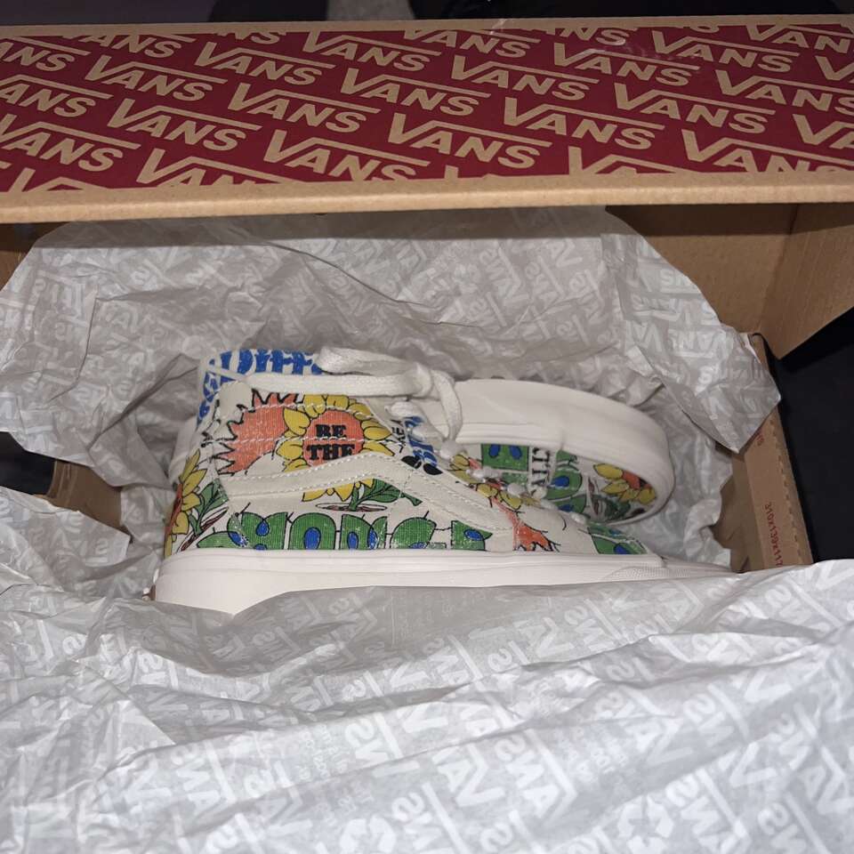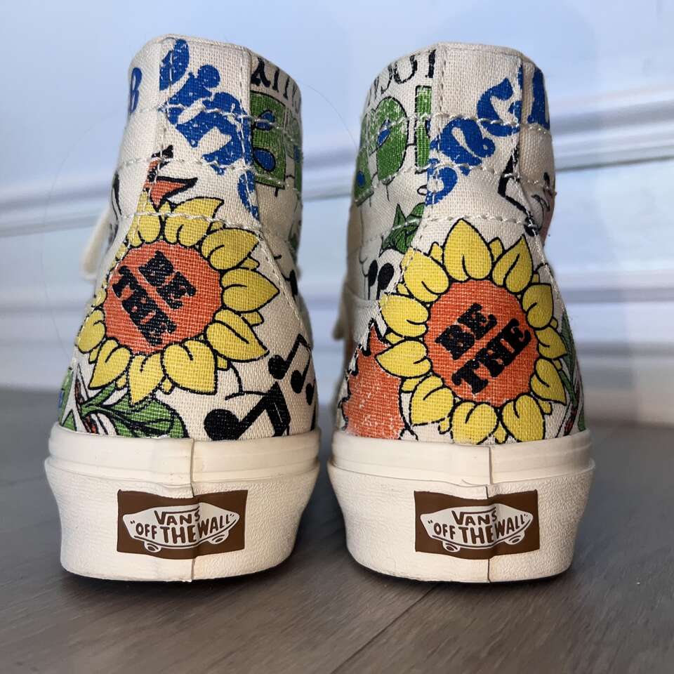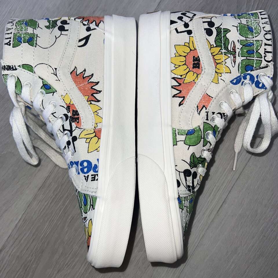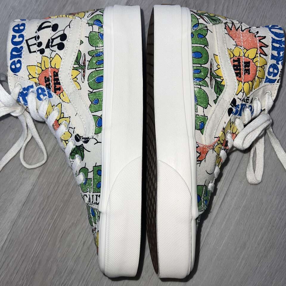 Venmo$40 FIRM. Great preowned condition! Only worn a few times. Bought at Urban Outfitters, Women's Size 7 or Mens Size 5.5. Come in a Vans shoe box. Tapered silhouette upper for a more slender fit than before - Tonal embroidery, metal eyelet details - Organic cotton canvas upper is made from non- GMO natural seeds - Jute laces made from a renewable natural fiber that minimizes water use - Vans Rubber Compound is made from responsibly sourced natural rubber sourced from tree farms that follow ethical and sustainable practices while still maintaining grip and traction - Vans is proud to take a more sustainable approach to their everyday classics with the new Eco Theory collection that leverages responsibly sourced materials and an eco-friendly approach across timeless colorways. The Eco Theory Sk&-Hi Tapered is made with 100% organically grown cotton, along with a responsibly sourced natural rubber outsole that still maintains the grip and durability that Vans has been known for since 1966. Laces are crafted from natural jute fiber, a natural cork topsheet finishes the footbed and the whole package is held together with water-based glues. Content + Care Cotton (organic), rubber - Spot clean - Imported - Size + Fit True to size -