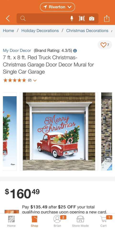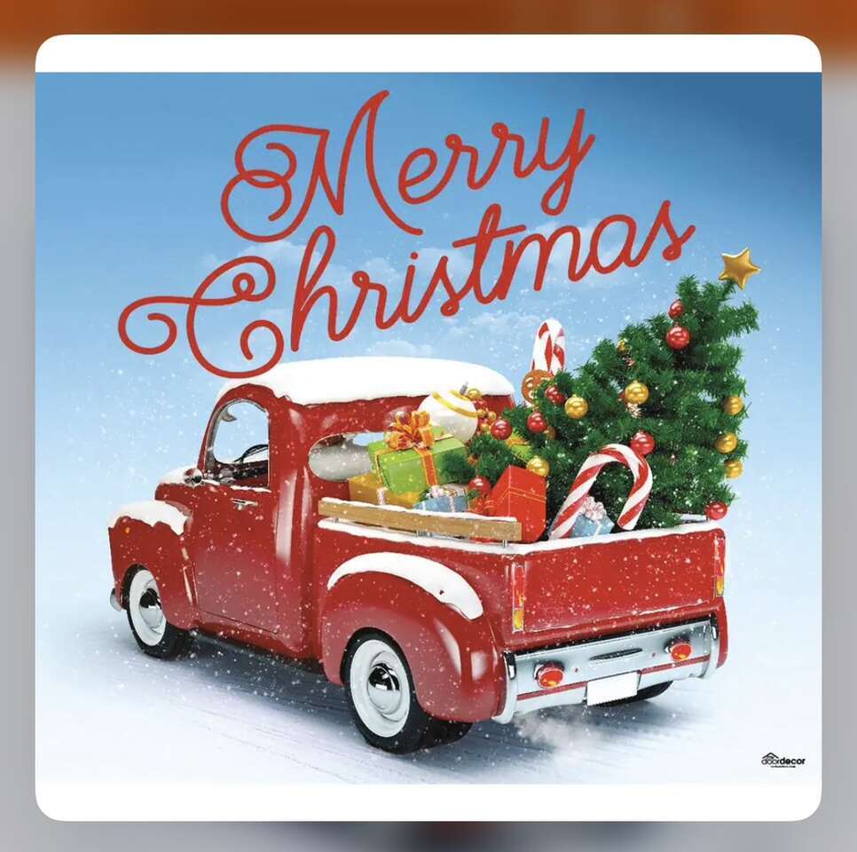 Description- 7’x8’ Single garage door vinyl “Merry Christmas” red truck Christmas decor banner. Includes mounting kit. See photos for more product information and specifications.