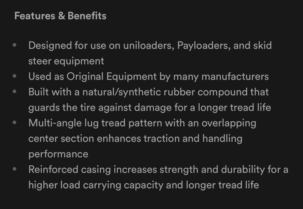 Description- (SET OF 2) Trac Loader 27X8.50-15 NHS 6-ply skid steer/equipment tires. I ONLY HAVE TWO OF THESE TIRES AVAILABLE. See photos for more product information and specifications.