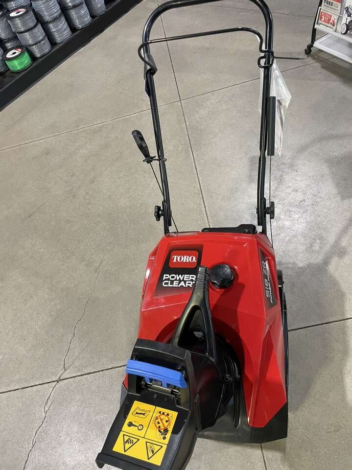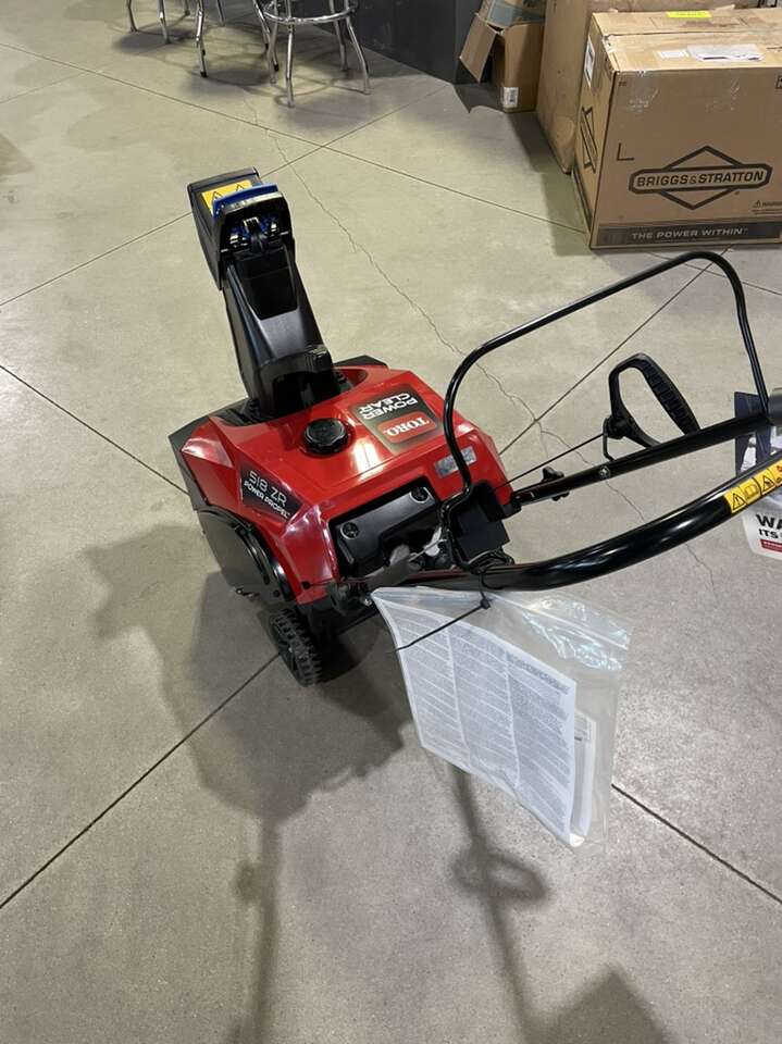 ApplePayModel 38474 -shreds snow while reducing clogging with curved rubber paddles and Power Curve technology -Throw snow exactly where you want with the mounted chute lever -99cc Toro Premium OHV engine with recoil start -18”/46cm clearing width, throwing snow up to 35’/10.7m