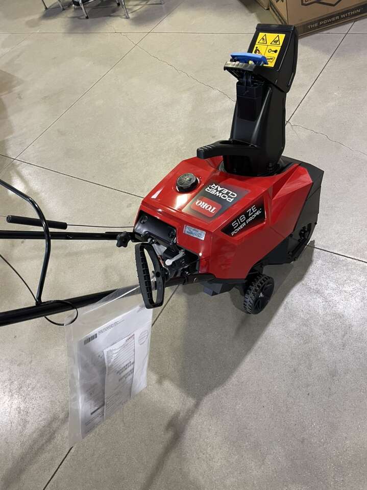 ApplePayModel 38475 -shreds snow while reducing clogging with curved rubber paddles and Power Curve technology -Throw snow exactly where you want to with the mounted chute lever -99cc Toro Premium OHV engine with push button Electric Start -18”/46cm clearing width, throwing snow up to 35’/10.7m