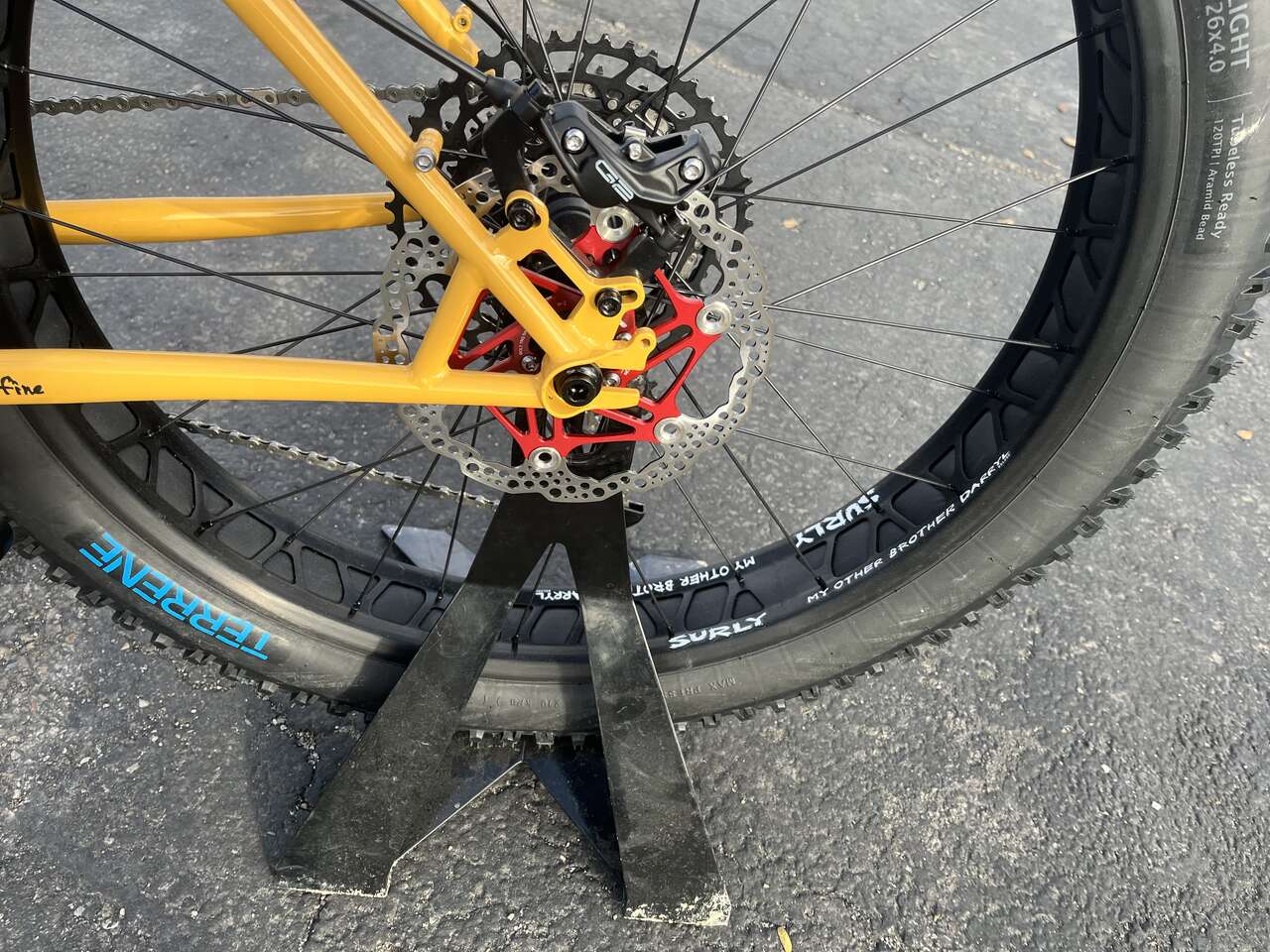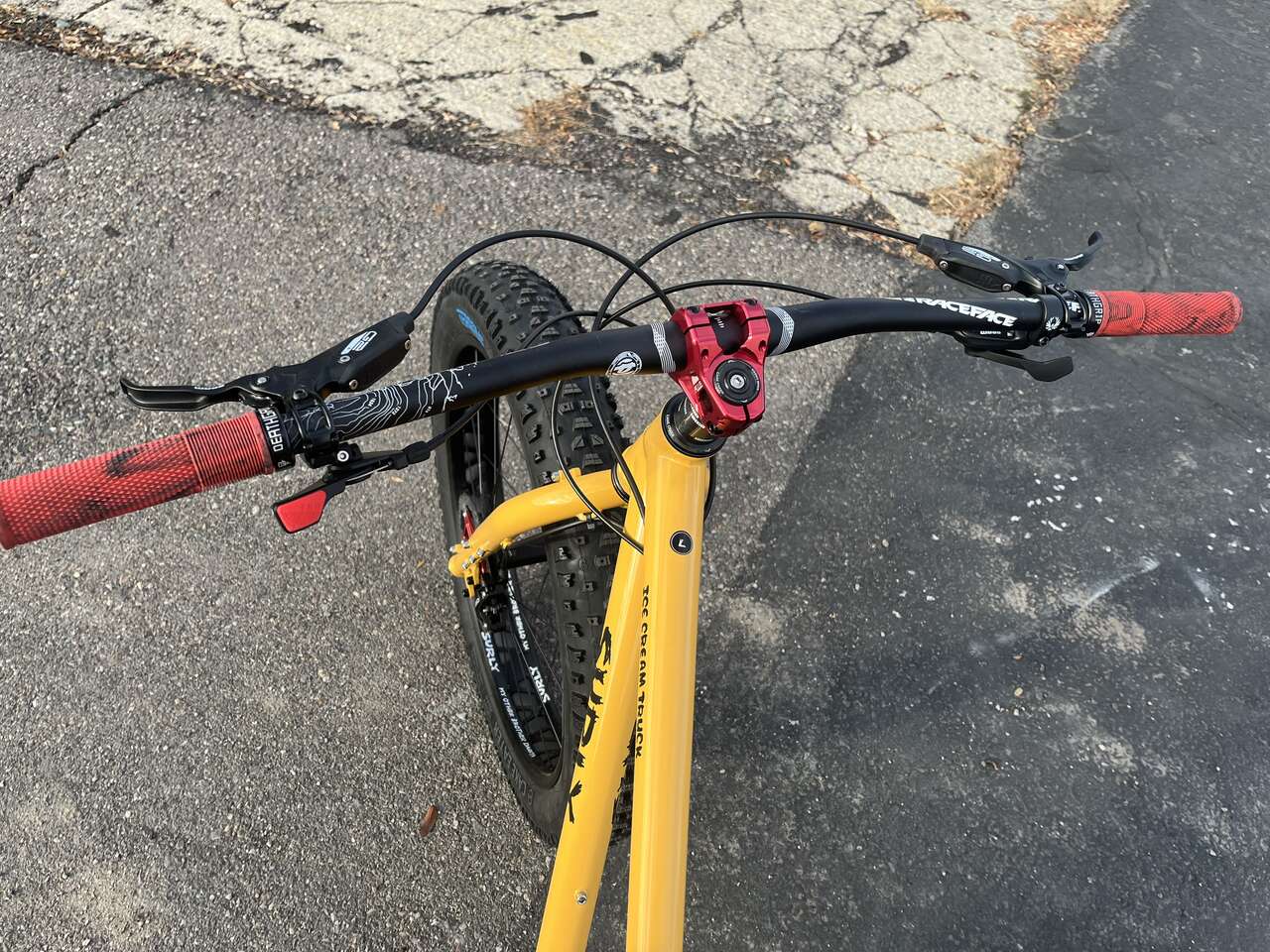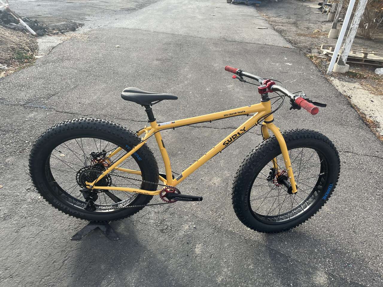 2024 Surly LG Ice Cream Truck Frame Sram SX Drivetrain Surly Other Brother Daryl Wheelset Sram G2 Hydraulic Brakes Cranbkbrothers Dropper Post 170mm WTB Silverado Saddle 180mm Hope Rotors Red Industry 9 Stem Red Raceface Atlas Handlebars