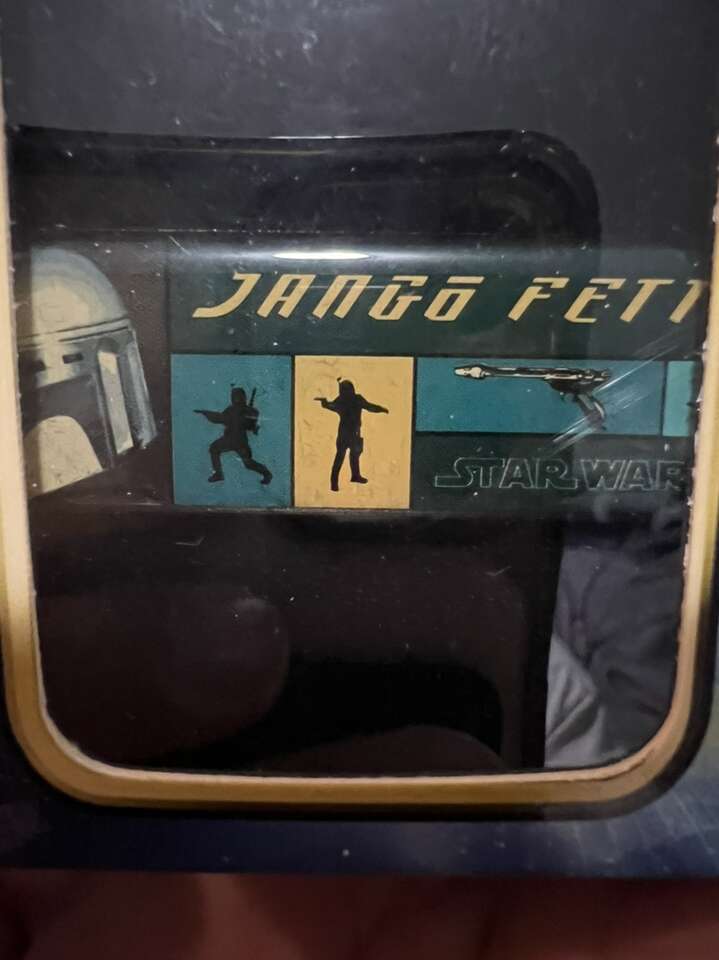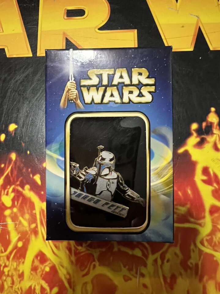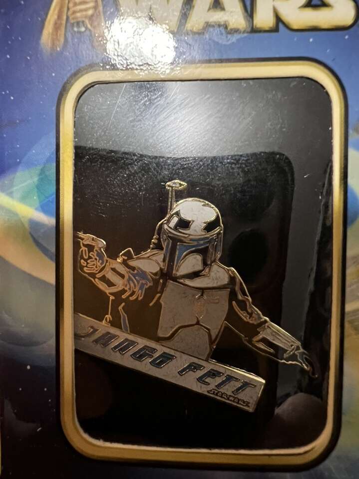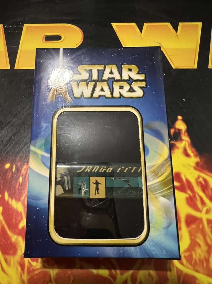 VenmoJango Fett upper body drawing blaster. Jango Fett rectangular pin. Hard to find. Great shape and never opened or used. See pictures for details.