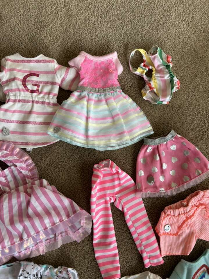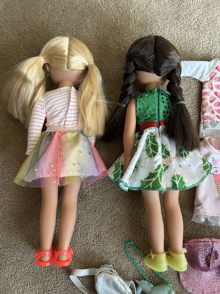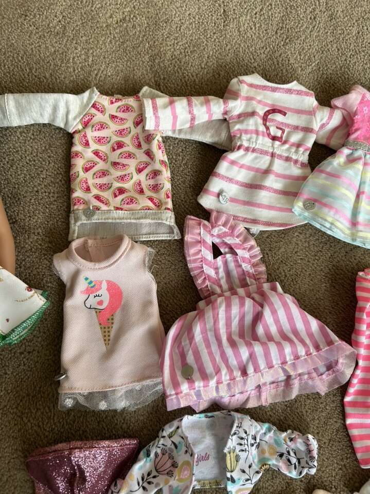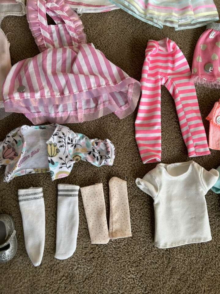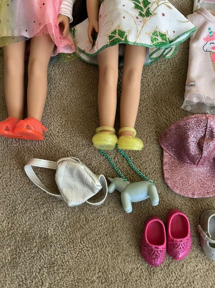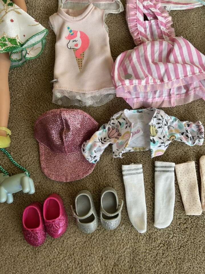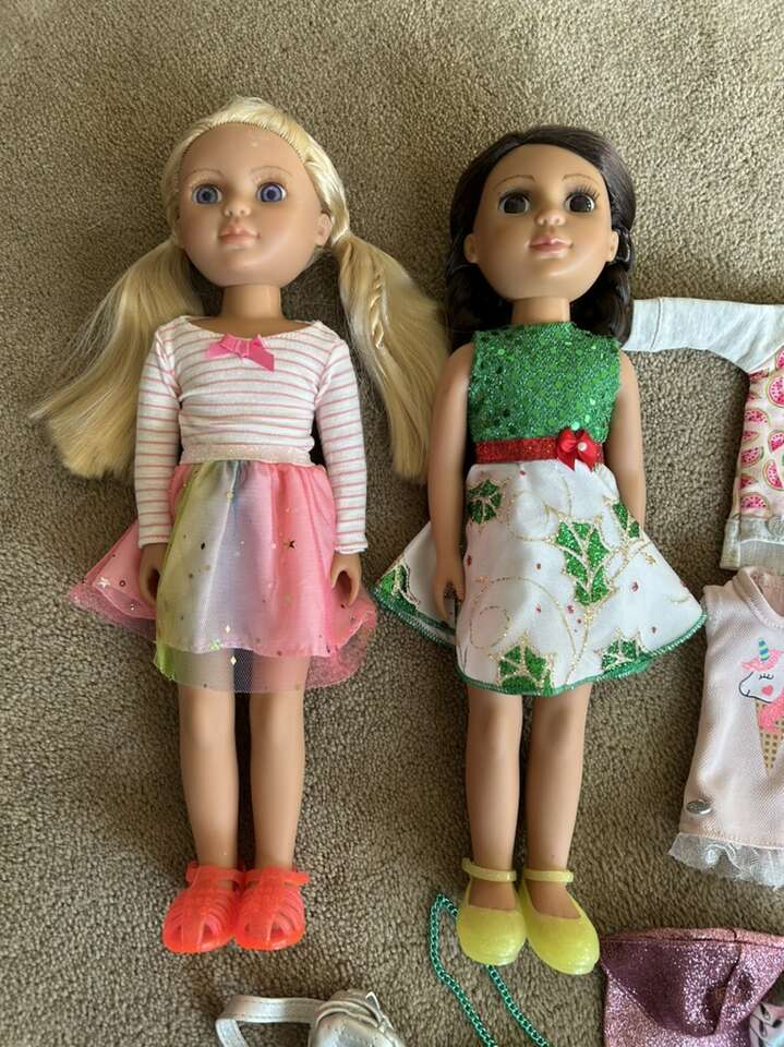 Glitter Girls Dolls, Clothes, and Accessories (Battat/Target brand). Same size as American Girl Wellie Wisher dolls. Includes everything in photos: two dolls, outfits, shoes, and accessories, from various sets. All in good condition. Text only. Cash or Venmo.