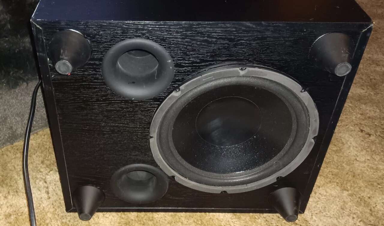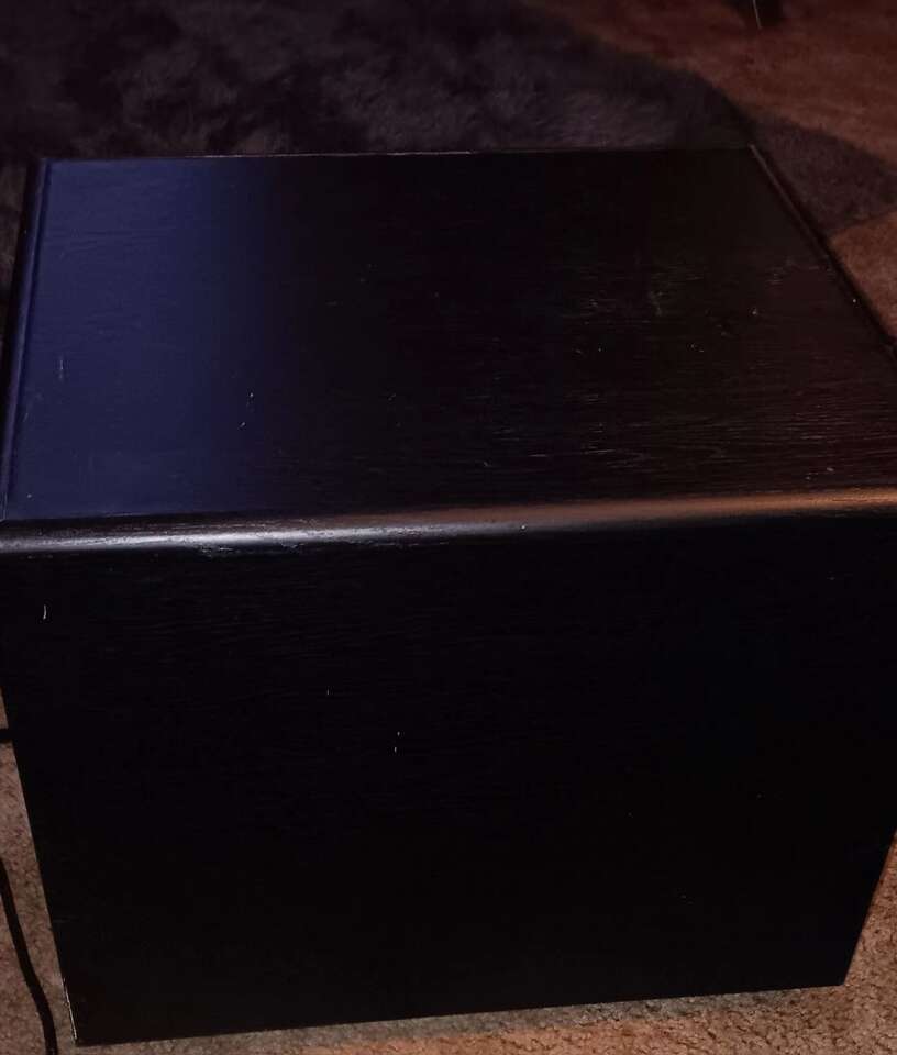 100 Watt Powered Sub Bottom side firing, By Dcm. specs in pics. great sub , used. slight cosmetic blemishes, works perfectly. no trades cash only .