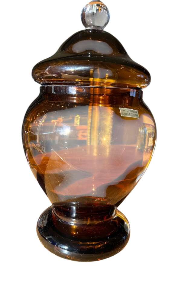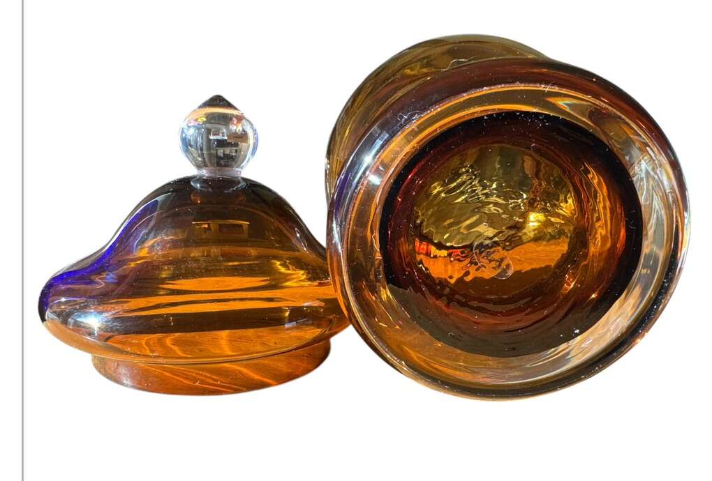 LG Vintage CHROMA COLLECTION MURANO Amber Art Glass Cannister w/