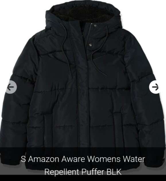 Amazon Aware Womens Water Repellent Polyester Sherpa Lined Hooded Puffer Jacket. Brand New