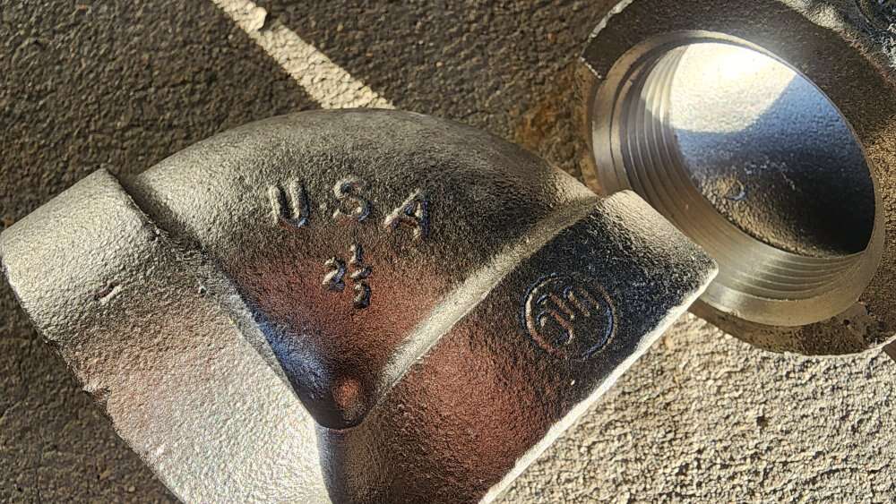 Have 5 2.5in black pipe elbows. $ 2 dollars each. Call 208-226-6366