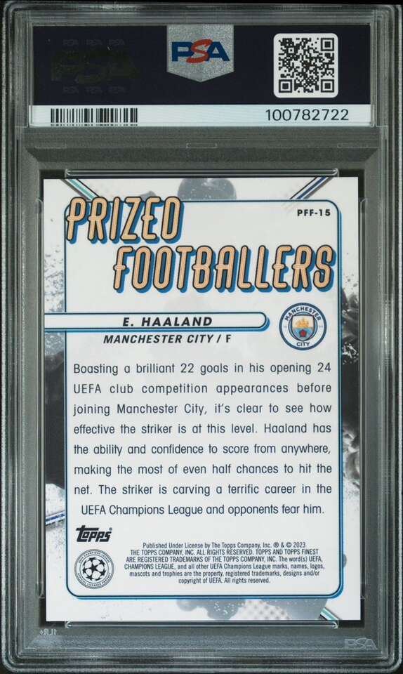 2022 Topps Finest UCC Erling Haaland Prized Footballers Fusion Red/Red /5 PSA 9