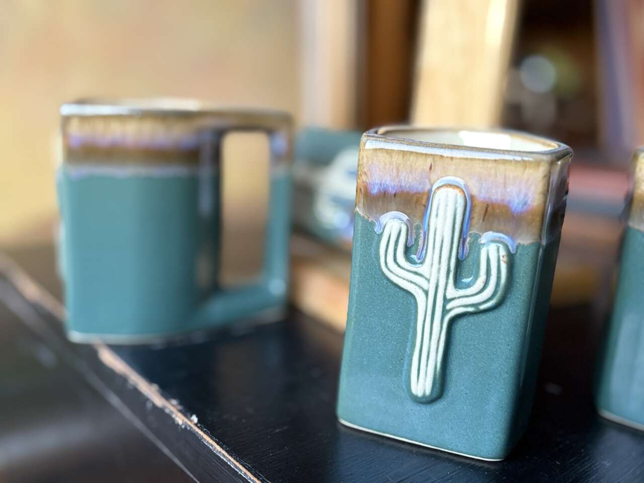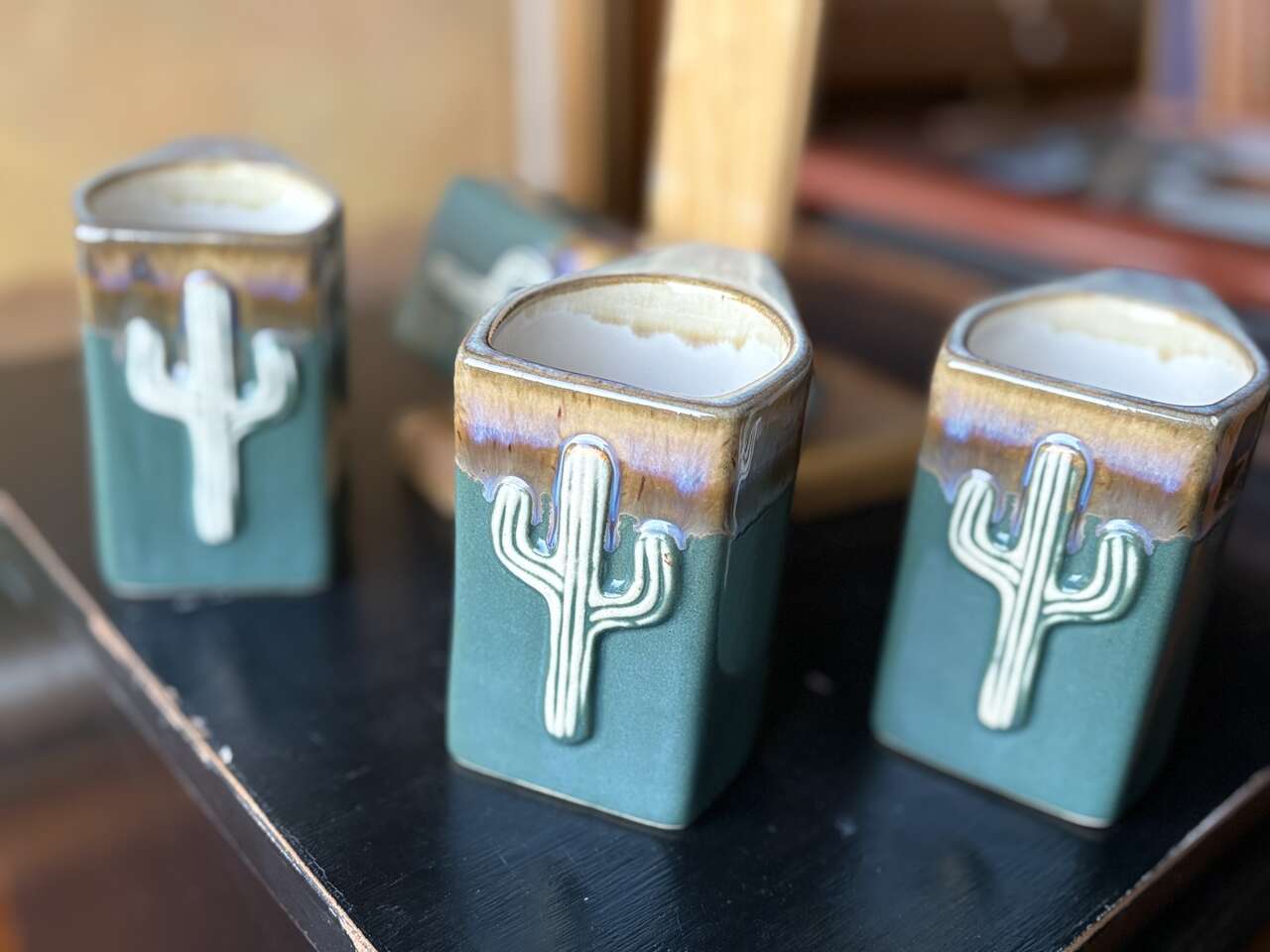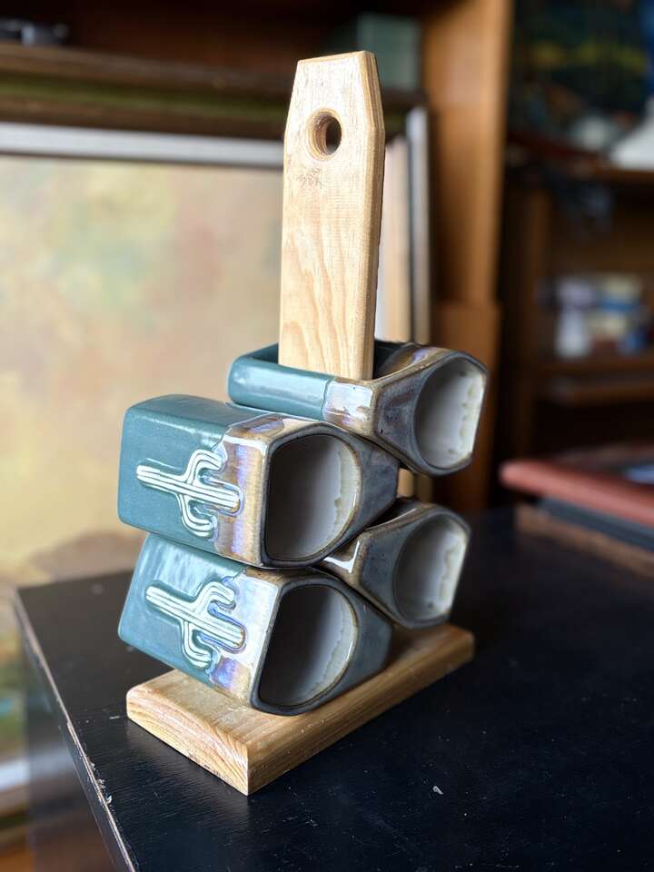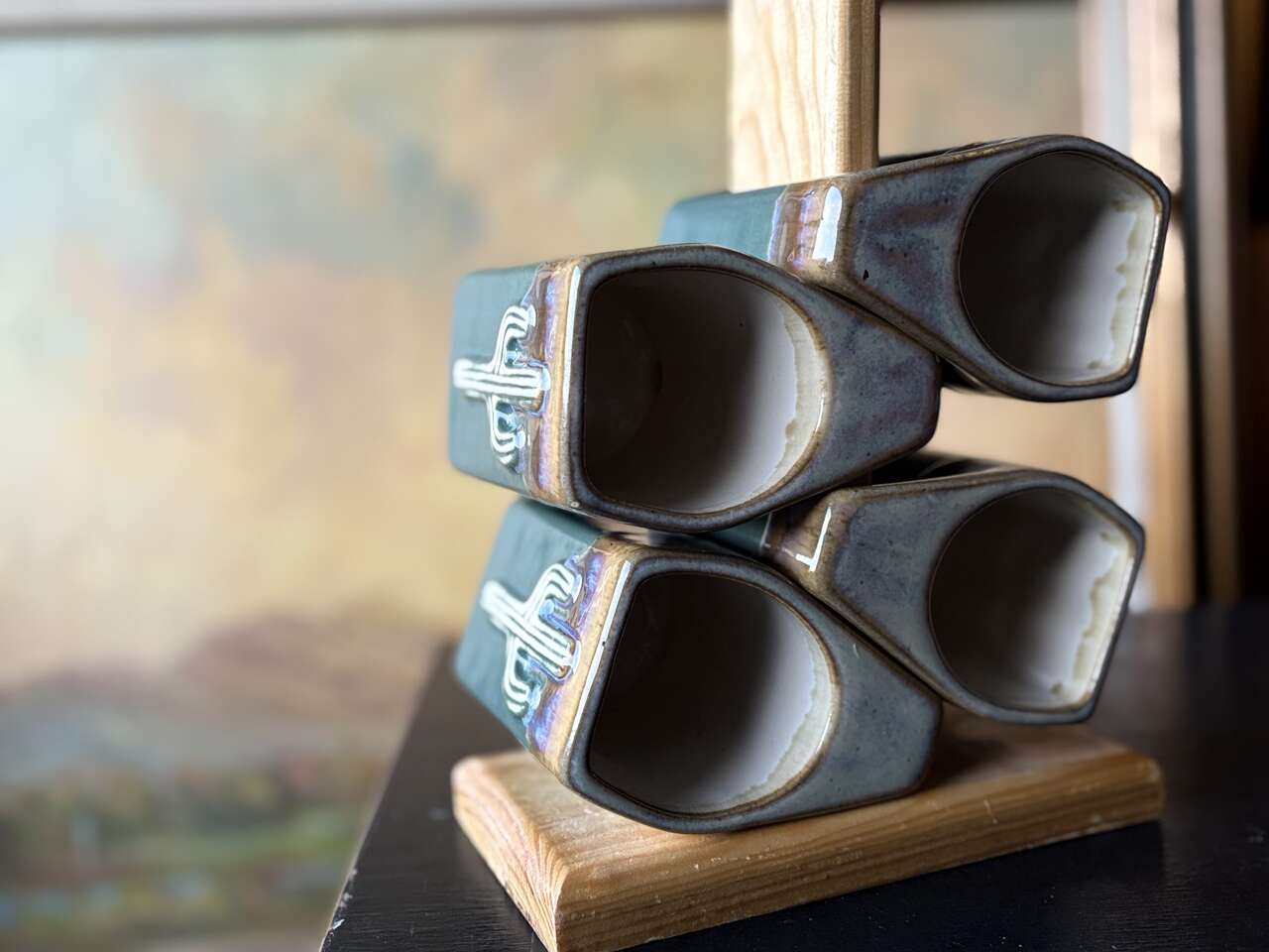 Venmo4 vintage Padilla drip glaze, cactus design, southwestern coffee mugs on original stacking tree. $60for the set of 4 w/ its stand