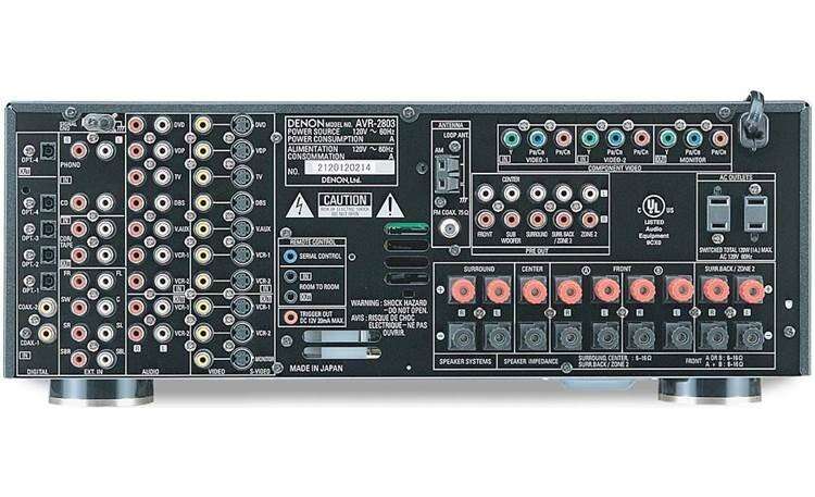 The AVR-2803 features an equal power 7-channel amplifier section, with identical amplifier design on all 7 channels, with high current discrete output devices on all channels. Each of the 7 amplifier channels is rated at 90 watts, into 8 ohms, from 20 Hz - 20 kHz with no more than 0.05% THD. The AVR-2803 can automatically store the surround mode for any of four input signals: (1) Analog and PCM 2 channel, (2) Bit stream 2-channel (Dolby Digital, DTS) and (3) Bit stream multi-channel.