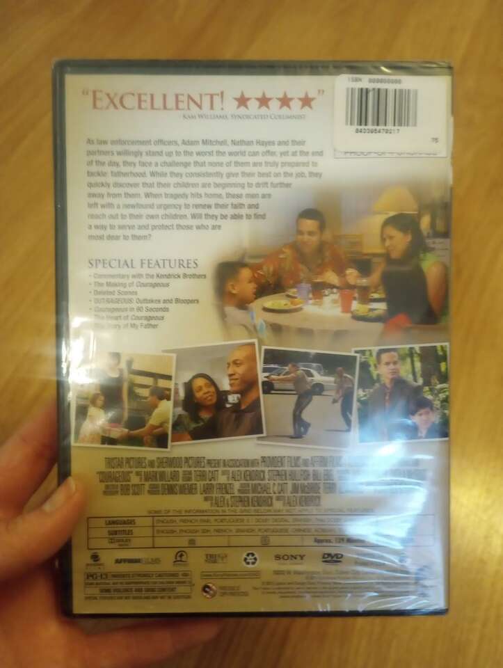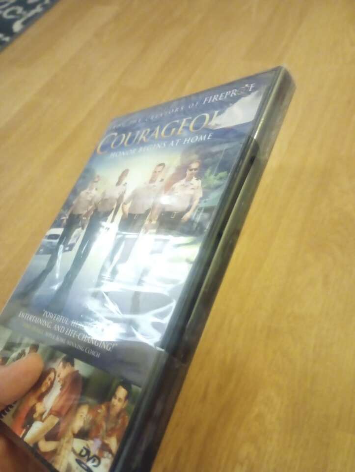 New copy of Courageous on DVD. Smoke-free home. The plastic is a little ripped but you can tell it's still new & mostly wrapped. Christian movie, rated PG-13. $5 obo~cash or Venmo. Will hold with Venmo. Text if interested.