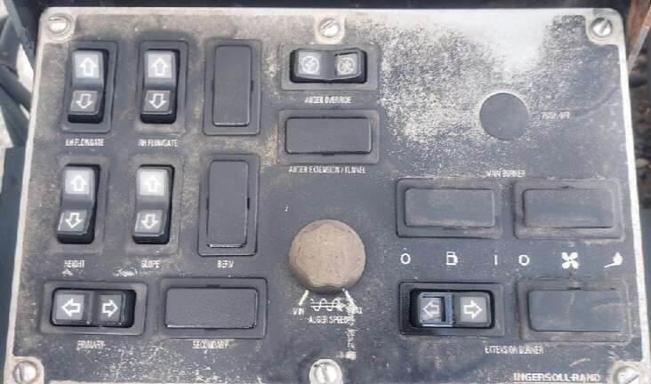 For sale is a 2001 Blaw-Knox PF2181 rubber-tire asphalt paver by Ingersoll-Rand. This mid-sized laydown machine is built for dependable paving performance with hydrostatic drive, dual operator stations, and a high-capacity material hopper.