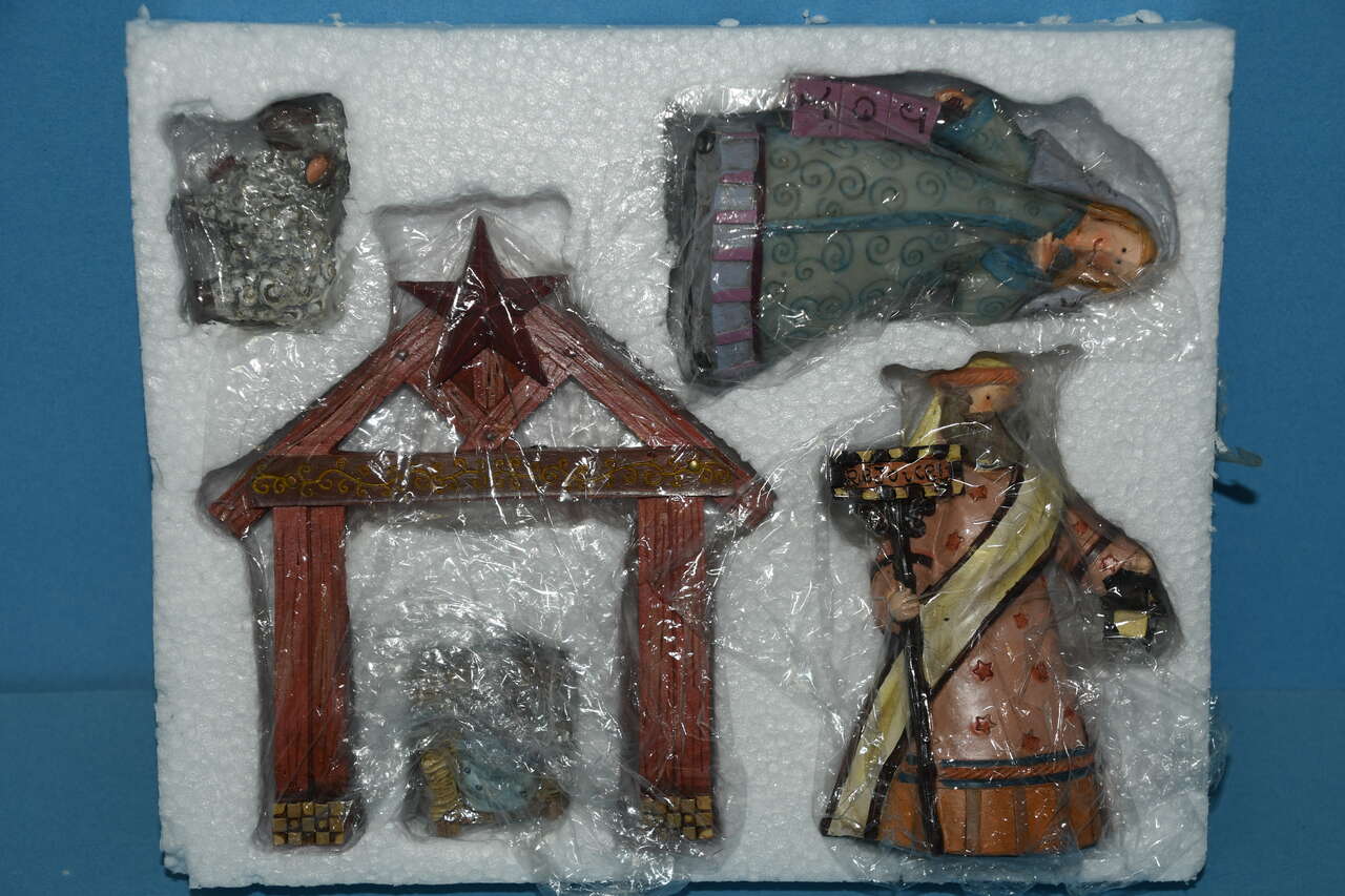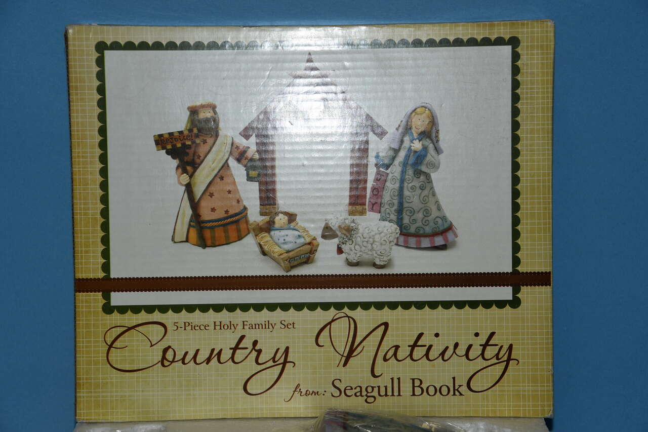This NEW "COUNTRY NATIVITY" 5 piece "HOLY FAMILY" Set is from a smoke free home. The stable is about 6". The box has a little wear. Questions??? Please ask. We are located in Plain City. Cash only please.