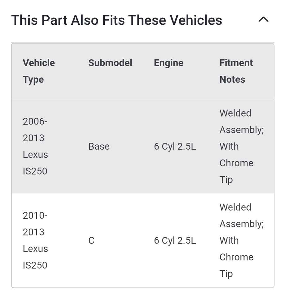 Fits Lexus 2006 - 2013 IS250 6 Cylinder 2.5 L