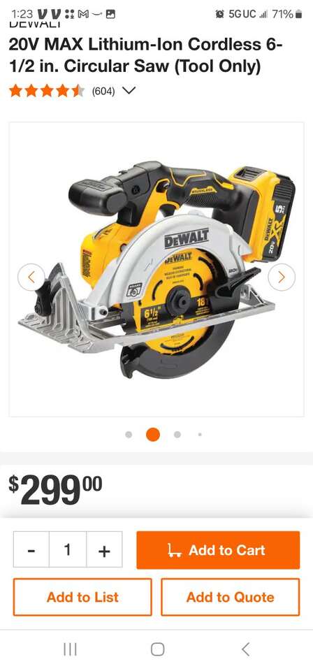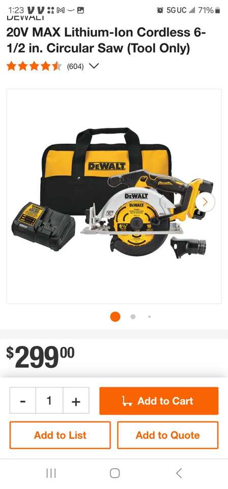 ZelleNew Dewalt 20V MAX XR 6 1/2in. Cordless Circular Saw Kit. Includes one 5AH battery and charger. Home Depot sells this Kit fir $299, I'm asking $180. Model Number DCS565P1.