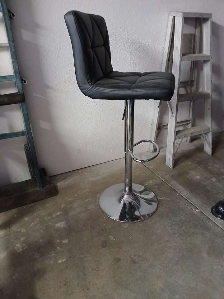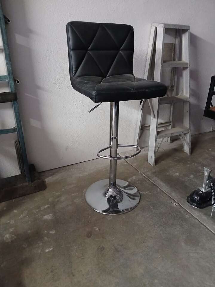 Black Stool black leather spins and rises up and donw.