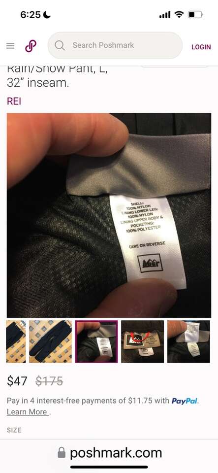 New REI black men’s ski pants. 36W x 30L Waterproof / resistant shell