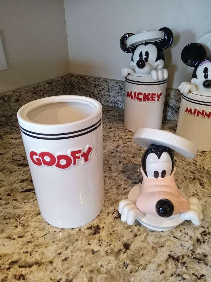 Canister sizes (without the lids) Goofy 8x5 Mickey 7x5 Minnie 6x5 Donald 5x5
