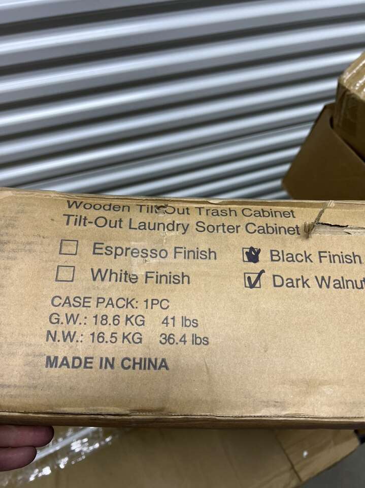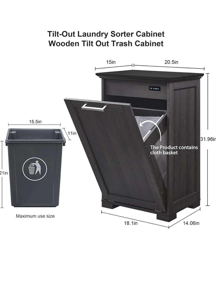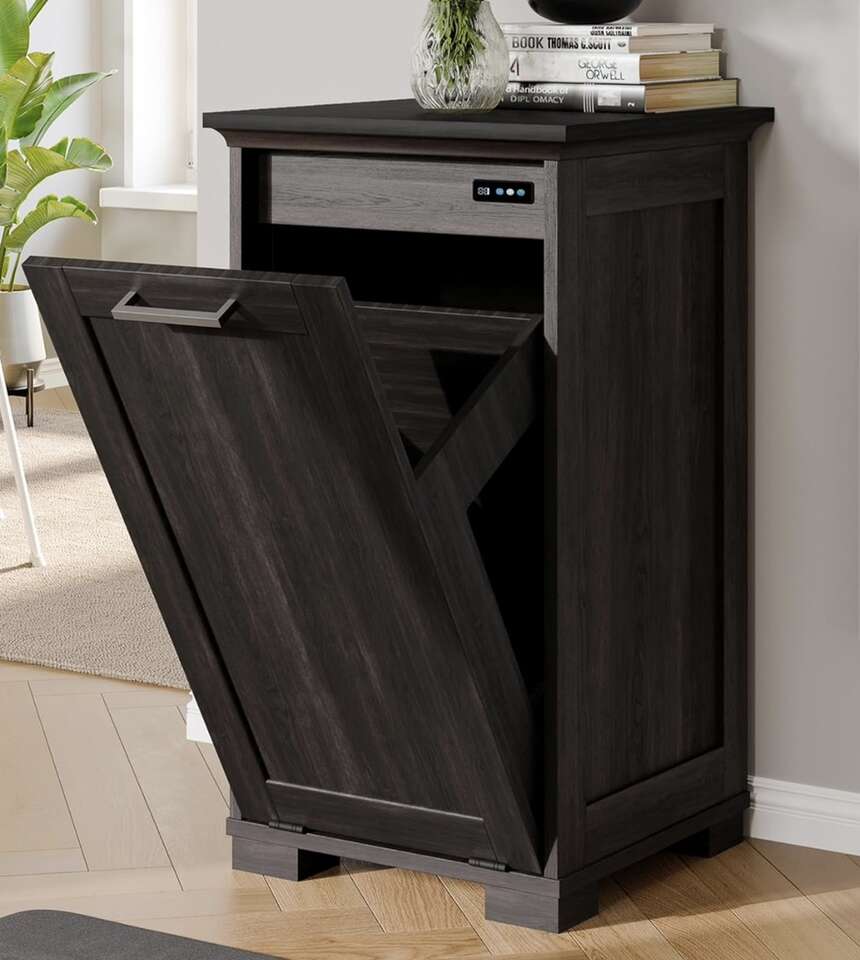 VenmoTilt Out Trash Cabinet Wooden, Single Door 10 Gallons, Espresso Finish+Black Top Panel