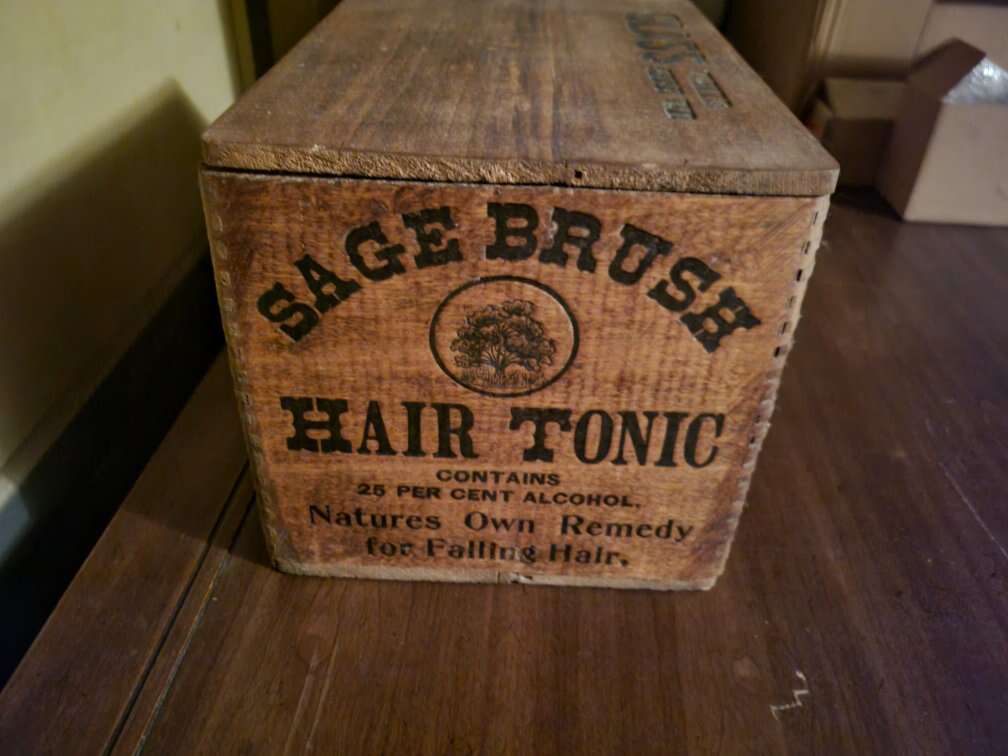 Sage hair tonic box with bottles. Beautiful lettering on box. Box is in good conition see pics.