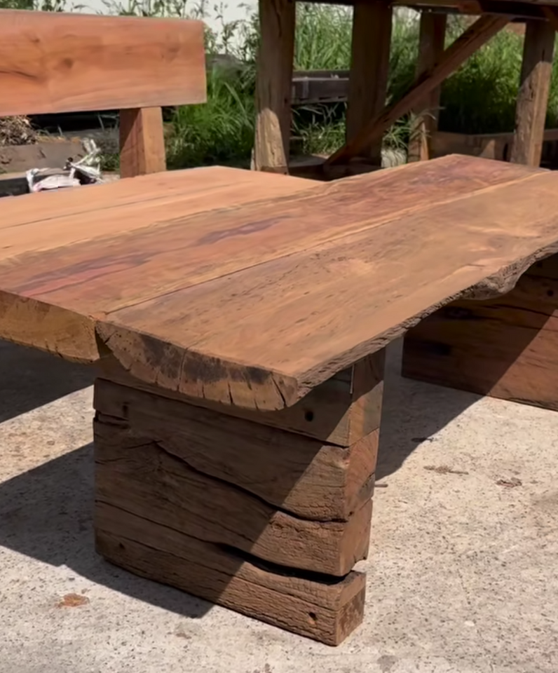 beautiful rustic patio set 2 benches one table Made from reclaimed wood Benches are 6 foot long Table 6 ft long 24" wide Or we can customize it to your specifications