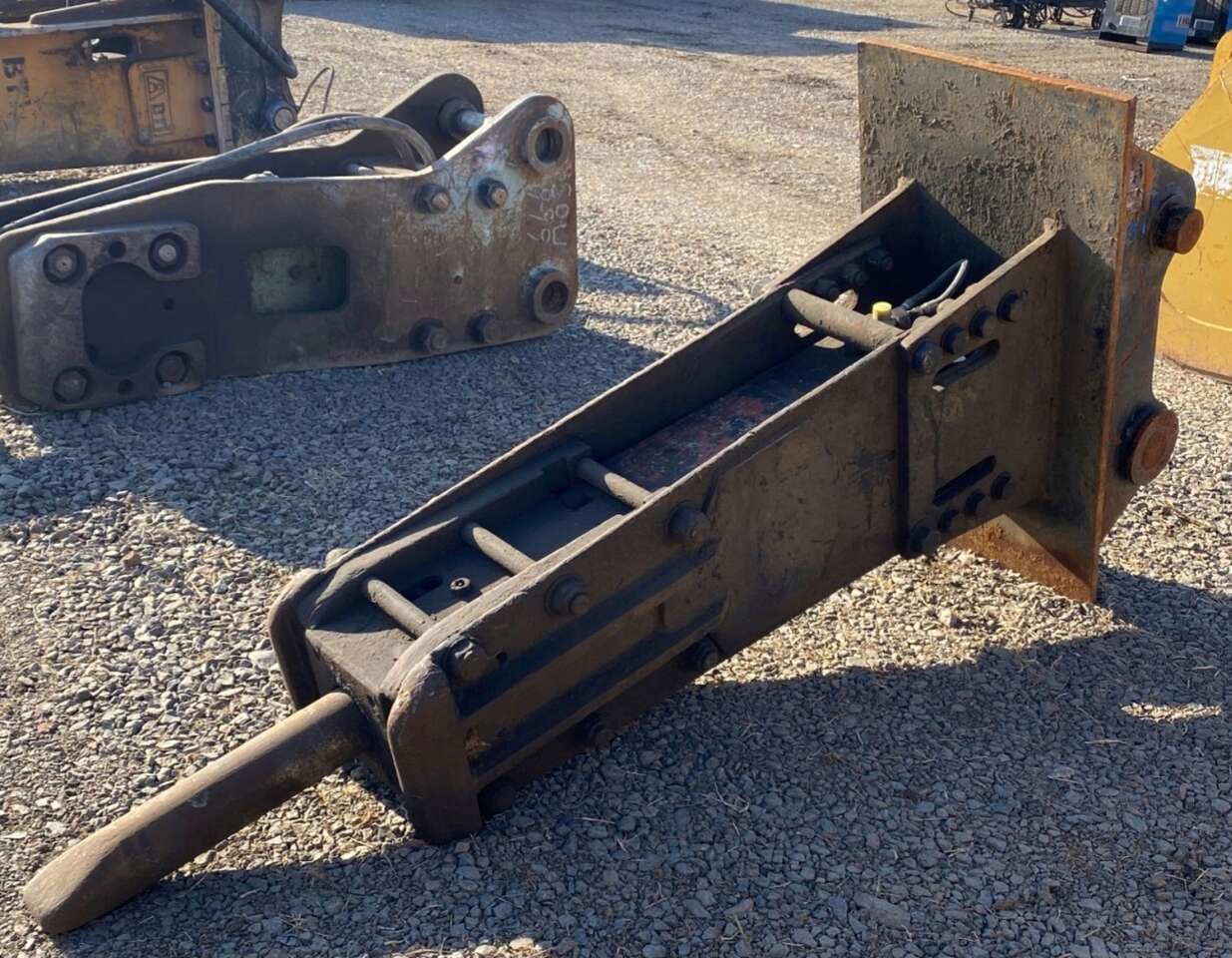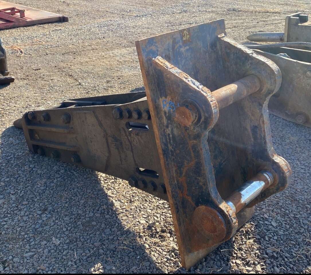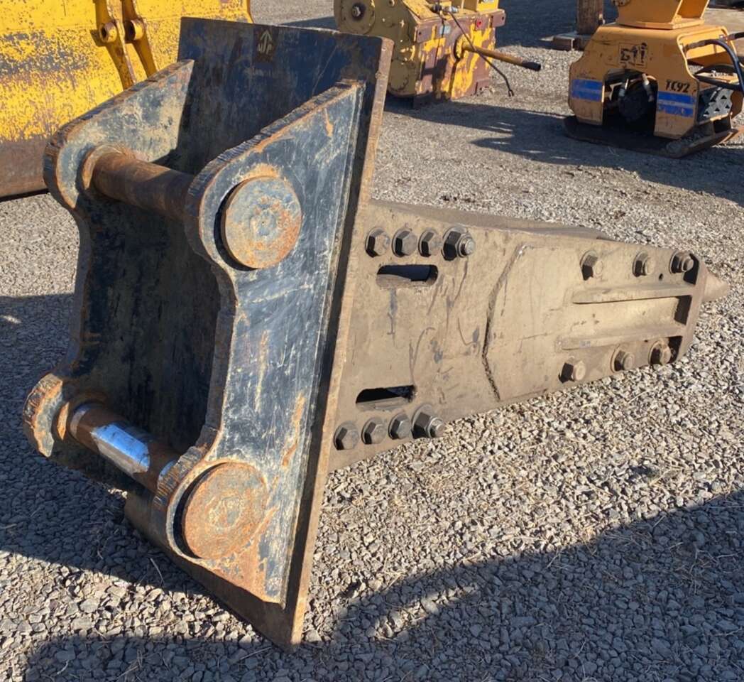 For sale is a hydraulic breaker. This fits 160 size track Hoe up to 300 size track Hoe, 40000 pound to 60000 lb excavator size machine. This features a 3.5 inch pin diameter, 20.75 inch center of pin boss to center of pin boss, 15.75 inch inside to inside pin boss spacing. Call Larry at 702-387-0865 with any questions about this item.