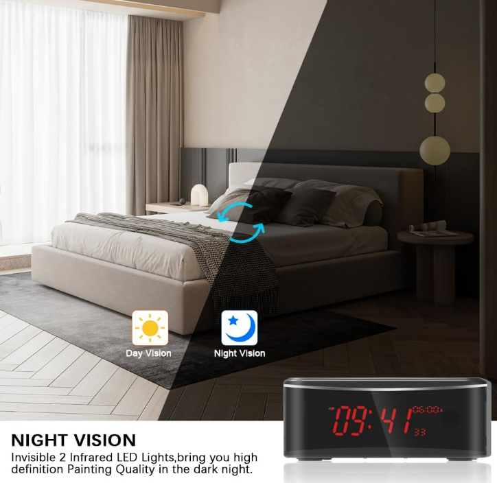 New in box! Hidden Camera Motion Activated/Stronger Night Vision/160°View Angle/4K,Spy Camera camaras espias ocultas with Bluetooth Speaker,Alarm Clock,Wireless/Wire Charger(2.4/5Ghz)