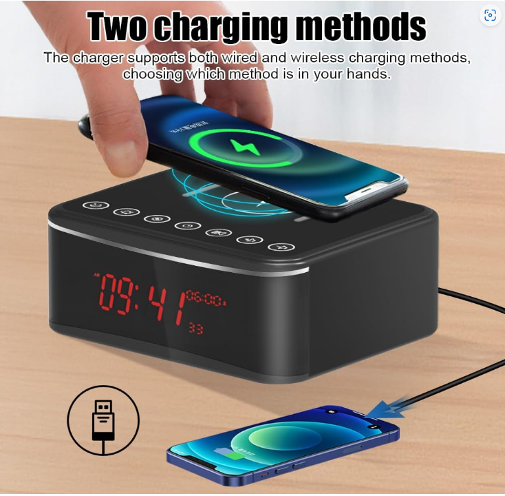About this item - Multi functions in one hidden camera:This is a muti-functional device which concludes spy cam,wireless charger and wire charger,Bluetooth speaker and alarm clock.Such a muti-functional camera is practical for a large number of families because it covers many functions including alarm clock and monitoring and so on.