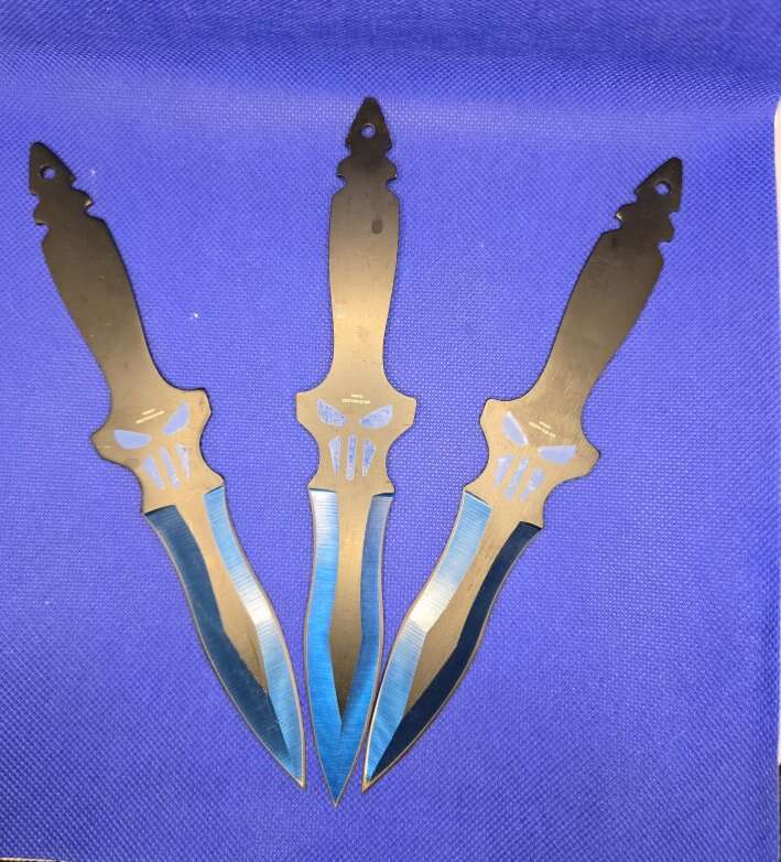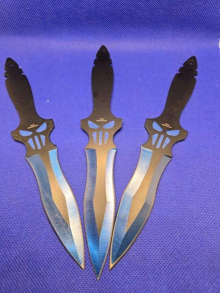 Unleash your inner vigilante with this set of 3 Punisher-style throwing knives, perfect for display, practice, or your collection.