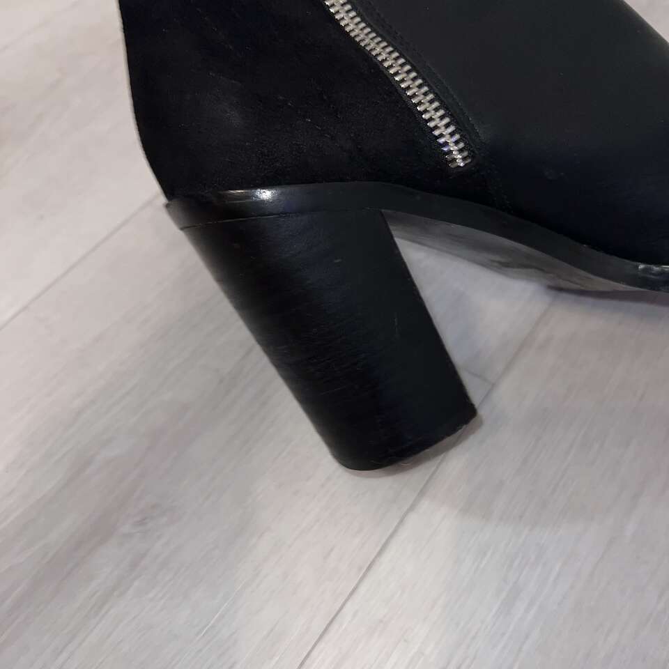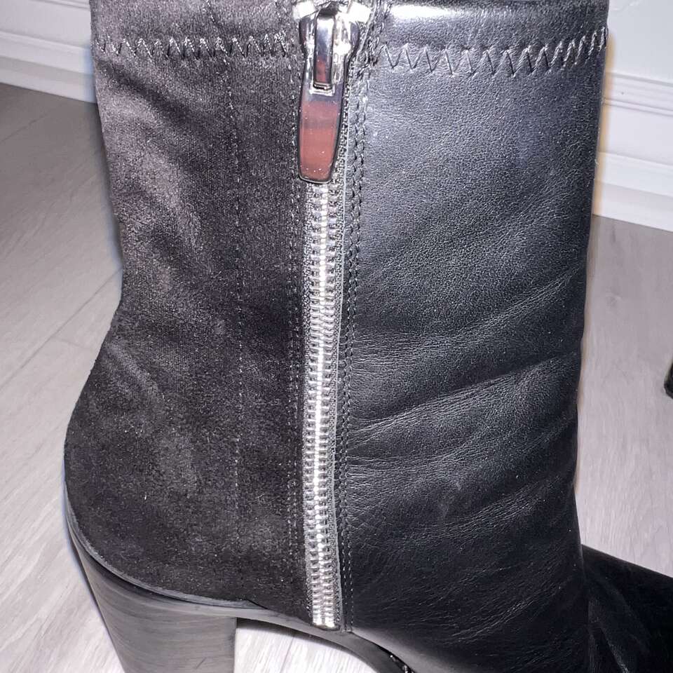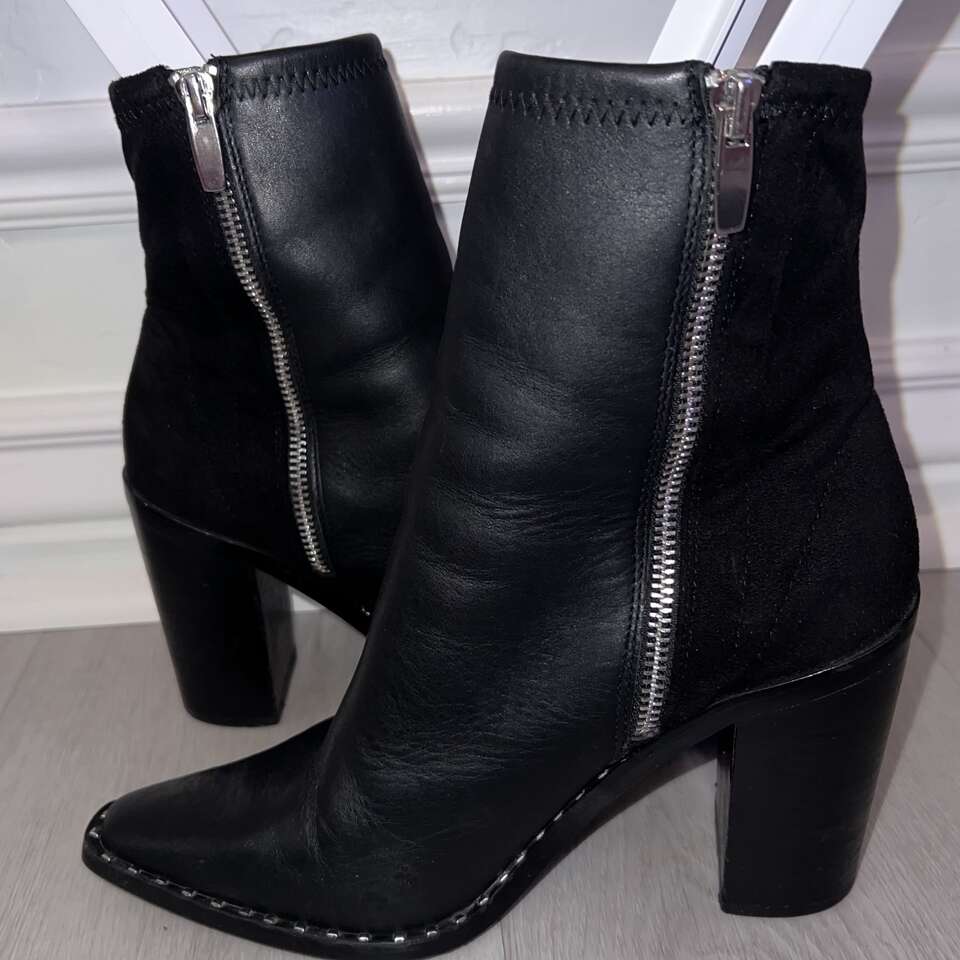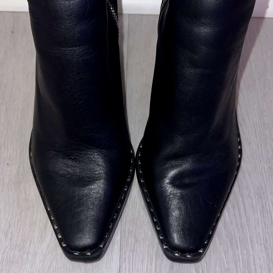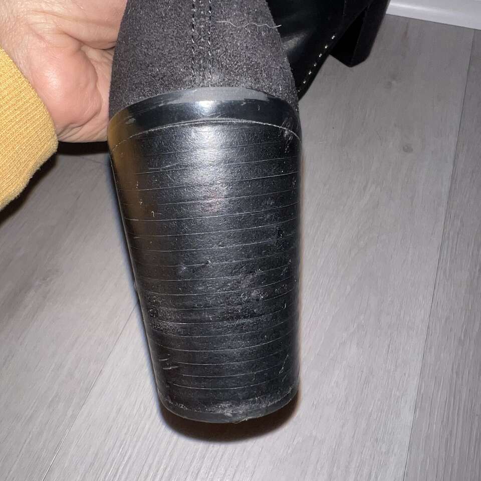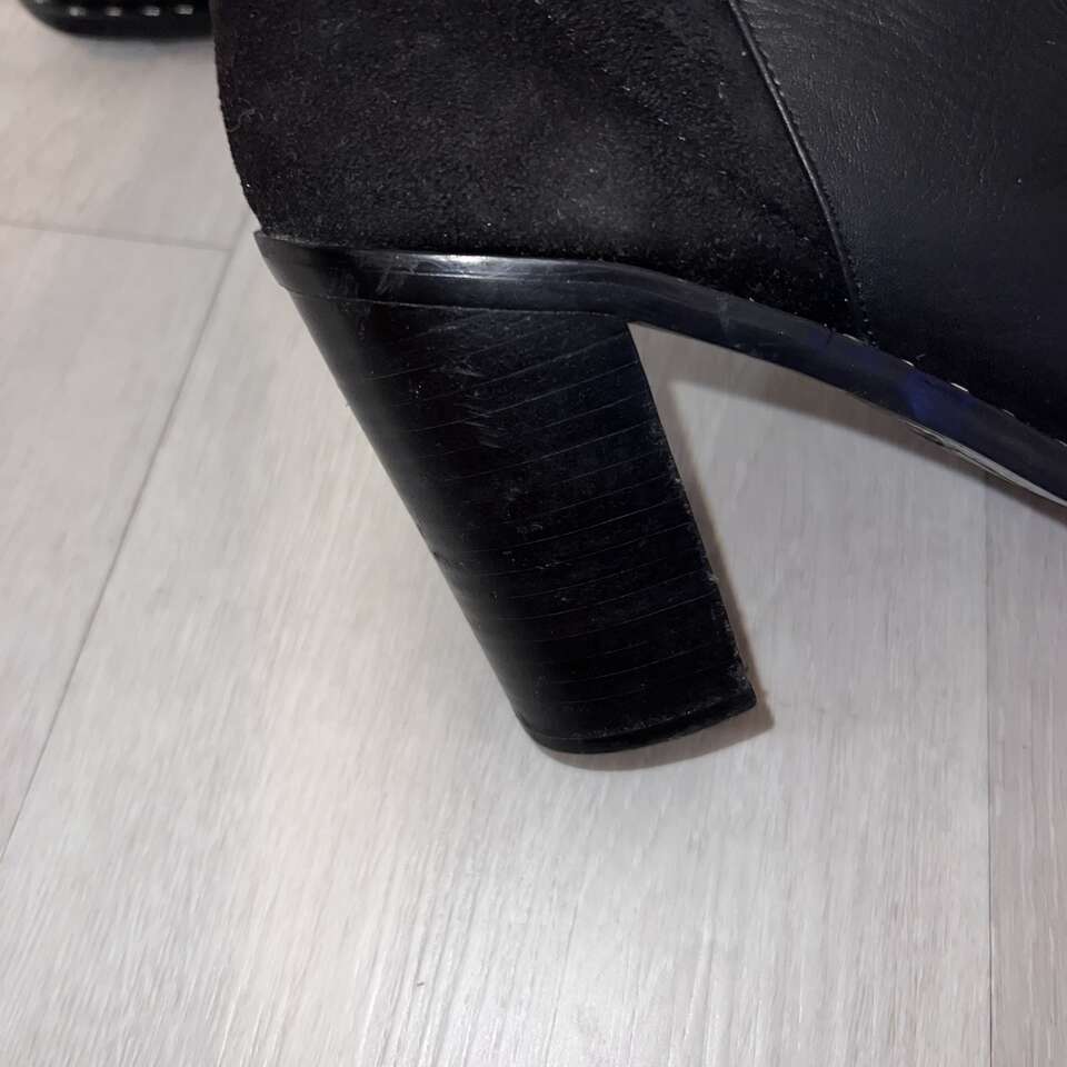 VenmoOnly worn a couple times. Great preowned condition! Paid $130 new. My favorite feature to these beautiful boots is the black suede at the back and the black leather at the front, and of course the studs. I have to downsize or I would keep them. Details...