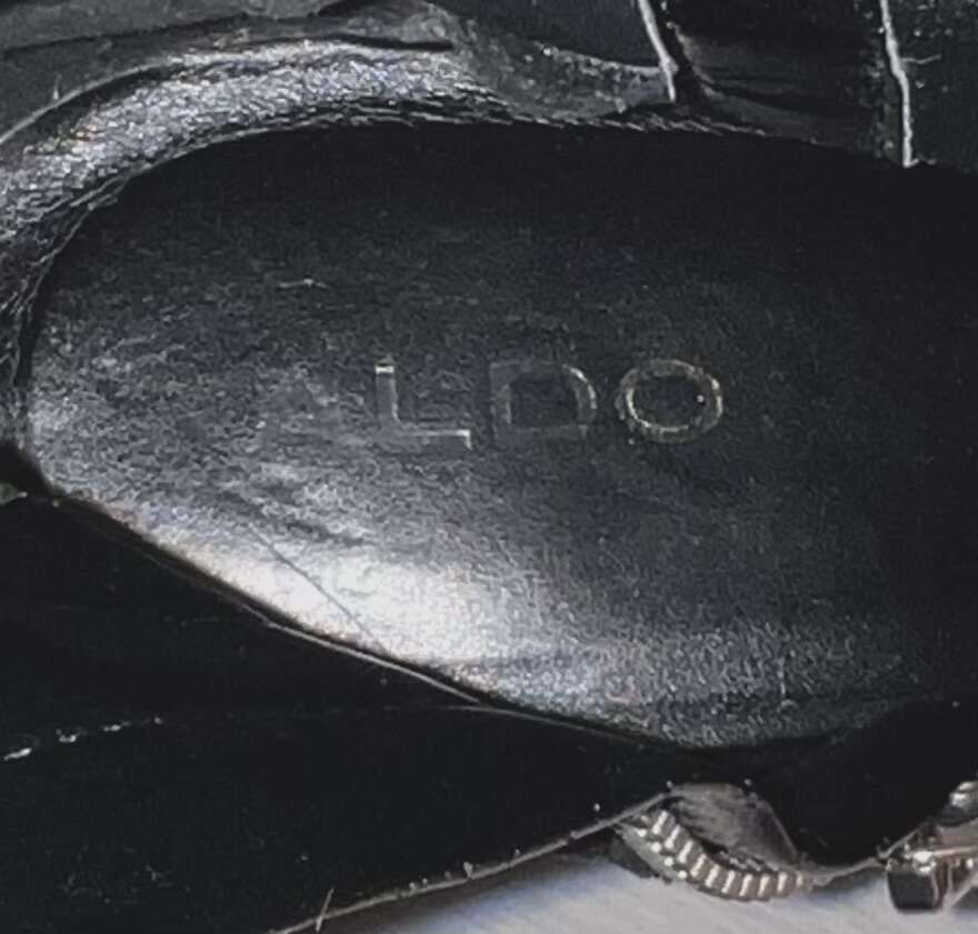 Elevate your style with these Aldo ankle boots. Crafted from high-quality leather, these boots feature a stunning studded accent that adds a touch of glamour to any outfit. The zip closure ensures a secure fit, while the high block heel provides a comfortable and stylish lift. Perfect for any occasion, whether you're dressing up for a night out, adding a touch of sophistication to your work attire, or throwing on a pair of jeans! These boots are sure to turn heads.