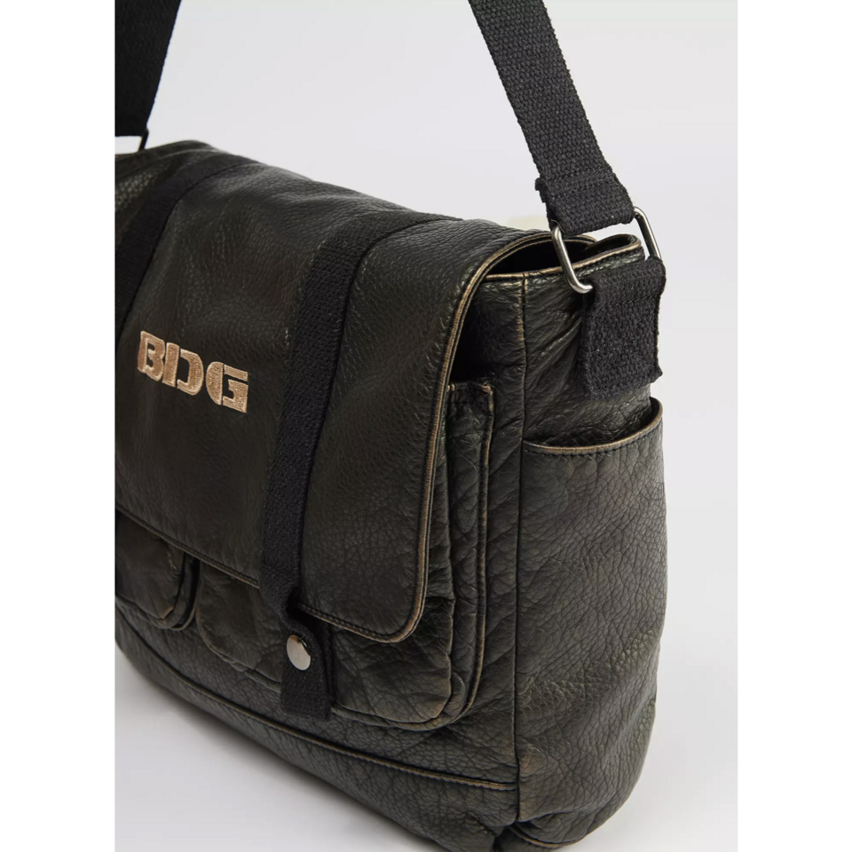 Messenger bag by BDG in faux washed leather fabrication and topped with a logo at the front. Foldover flap style for a classic look. UO exclusive