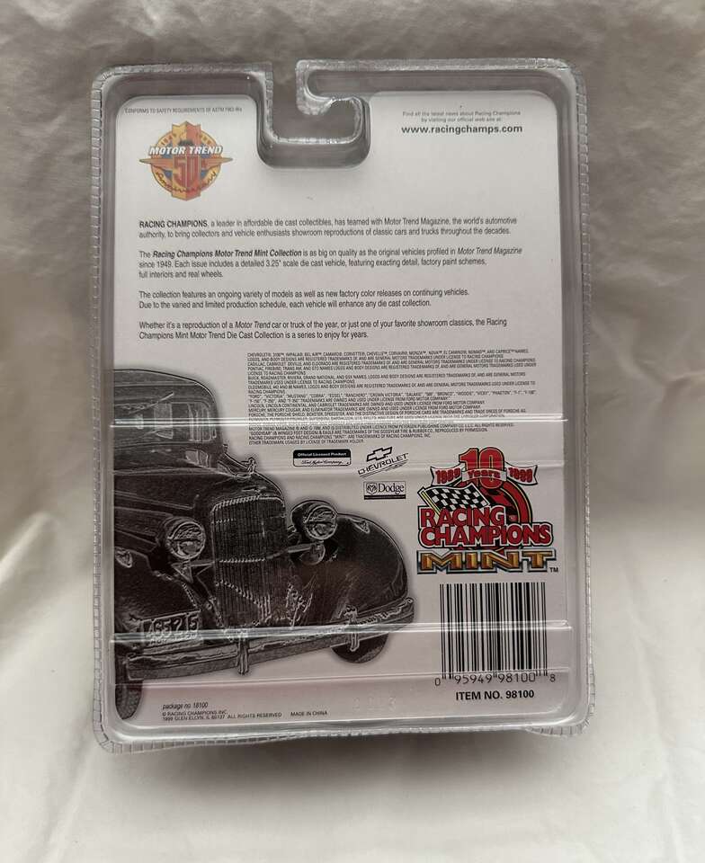 Racing Champions Mint Classic Die Cast Collectible includes openinf hood, detailed engine compartment, and real rubber tires. Vehicle comes with display base and cover. This classic die cast collectible series is encased in plastic and numbered 1 of 9,999 with serial number printed on chassis. It is factory sealed. Local meet up. Accept cash