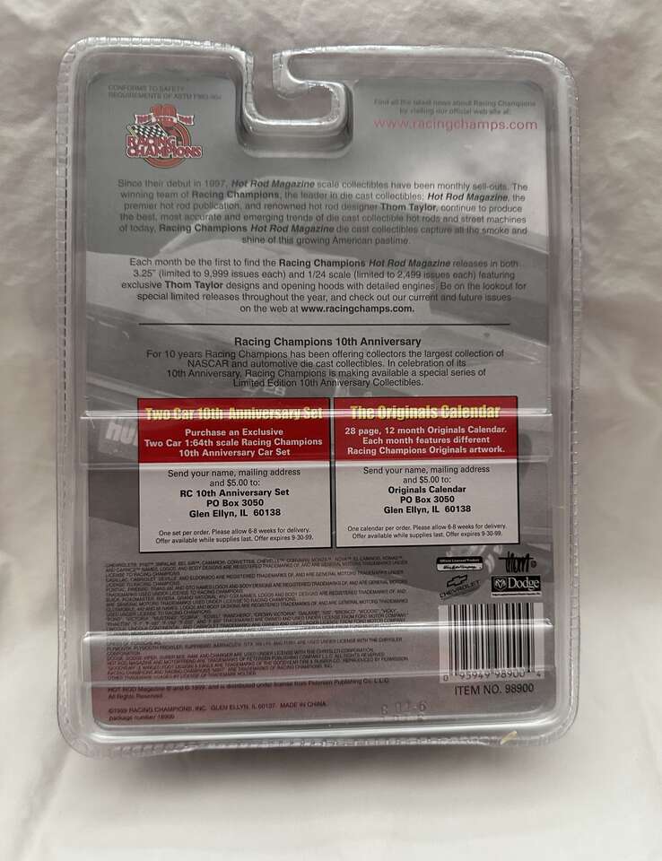 This is a limited edition of an officially licensed Hot Rod die cast vehicle. It is issue #138 of the Hot Rod Drag Racing Series manufactured by Racing Champions. It is a die cast body with a detailed engine. This classic die cast collectible series is encased in plastic and numbered 1 of 9,999 with serial number printed on chassis. Local pick up. Cash accepted.