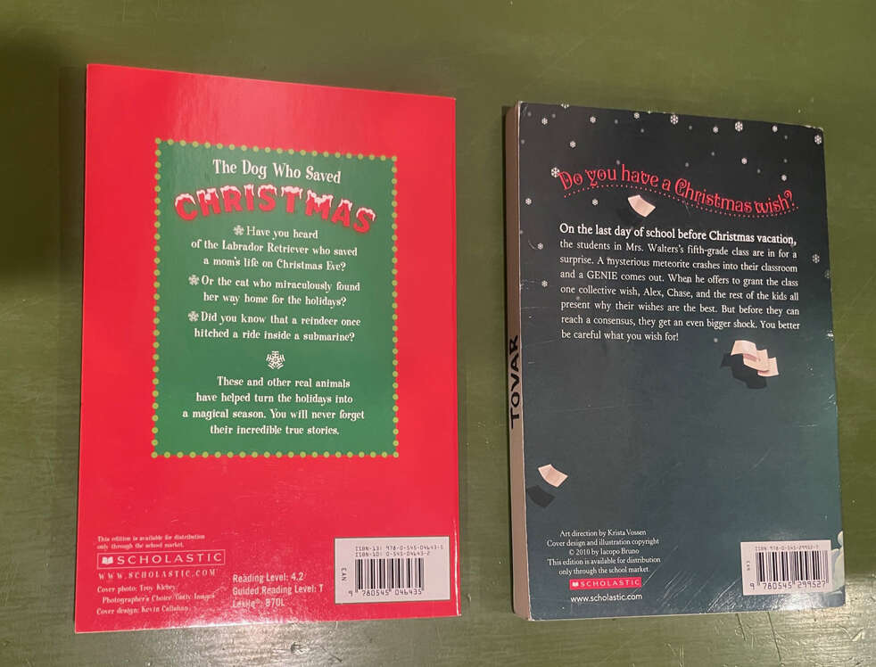 $1 EACH. Two Christmas Books - The Dog Who Saved Christmas and The Christmas Genie. Cash preferred. Pick up only in southwest Orem.