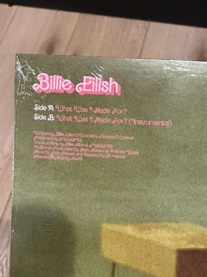 Billie Eilish’s What Was I Made For? From the motion picture Barbie on Barbie pink vinyl 7 inch vinyl. The single. It’s brand new and still sealed. It is sold out on her website making it more valuable. Vinyl is made of bio-based PVC. Jacket is made of 100% recycled materials. Tracklist: Side A 1. What Was I Made For? [From The Motion Picture “Barbie”] Side B 1. What Was I Made For? [From The Motion Picture “Barbie”] (instrumental version)