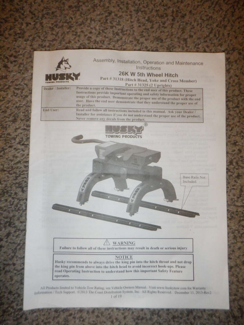 Husky 26K 5th wheel hitch and a Drawtite gooseneck hitch with base rails and mounting hardware to a GM truck.