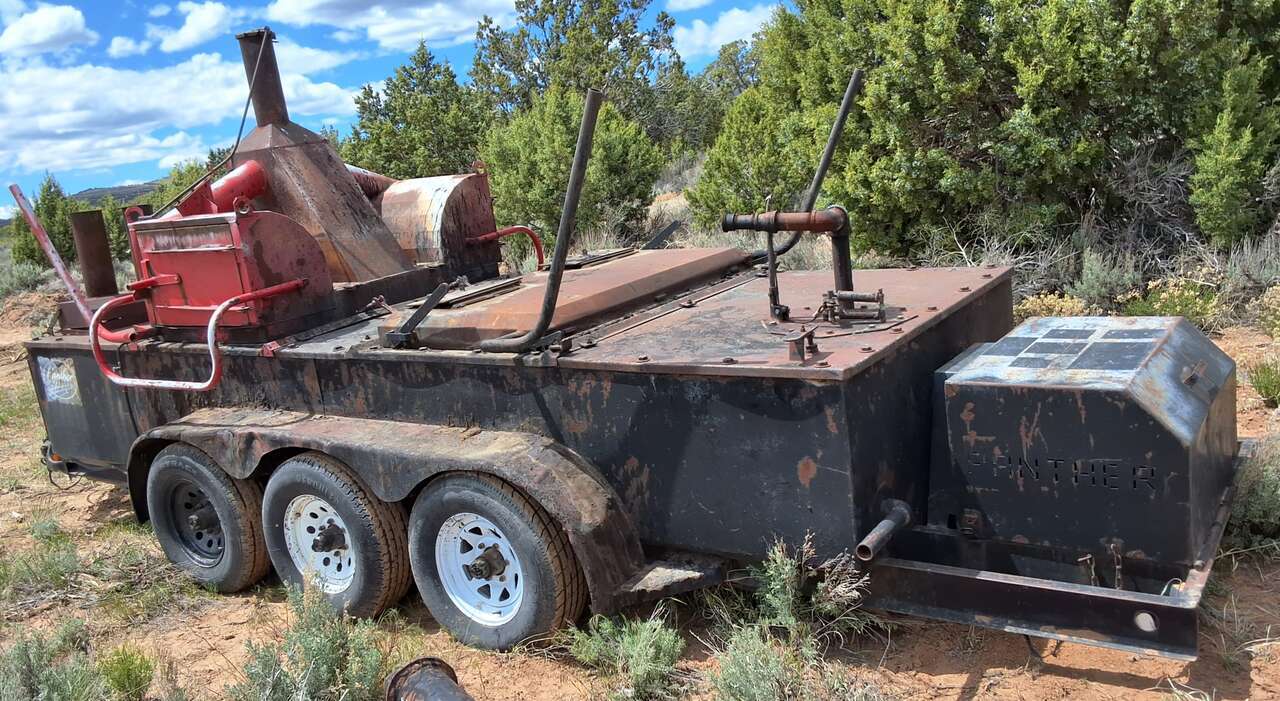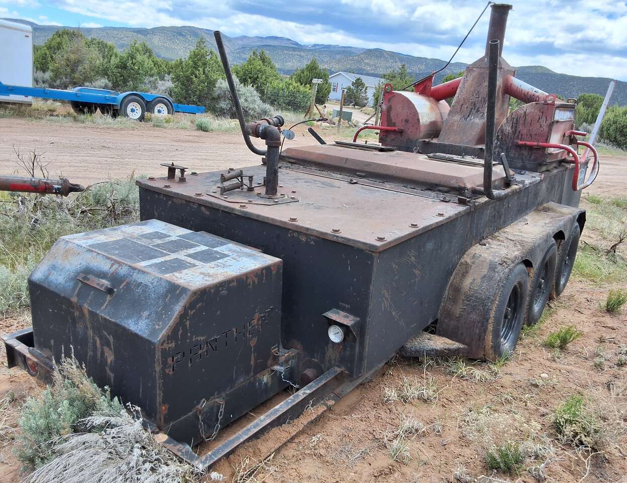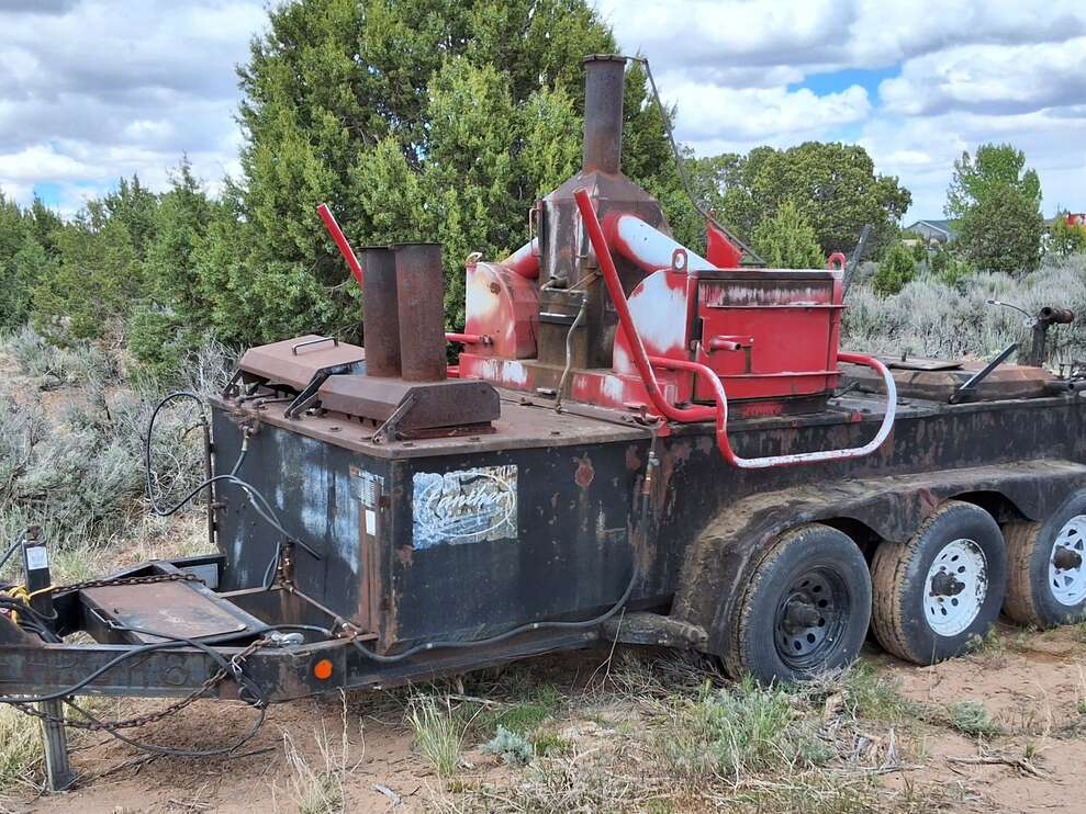 This is a 1997 Panther Hot Box Asphalt Patcher. Model P-1200 thus it holds 1200 gallons of hot tar, temperature can get up to 480 degrees. These are great for those who need to keep asphalt at the optimal temperature for patching, making it an essential tool for asphalt and pavement maintenance Tasks. It is known for its ability to recycle and reheat existing asphalt. This is a big unit with 3 torsion axels, Hydraulic breaks and double flue LPG Burners. Also has Honda GX240 8.0 gas engine. And don’t forget the smoke stack for every kids dream. If you have any questions give us a call 702-357-0865