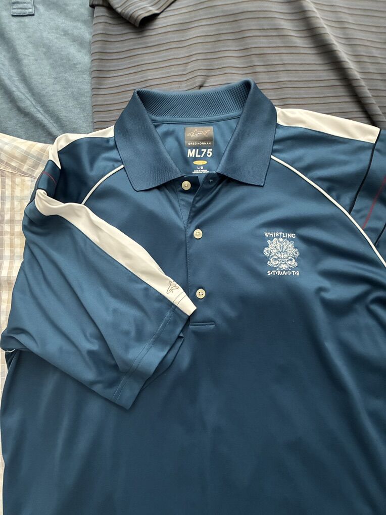 Bottom row: Adidas, black and blue Austin Reed, white grey and light blue Greg Norman (has whistling straits logo)